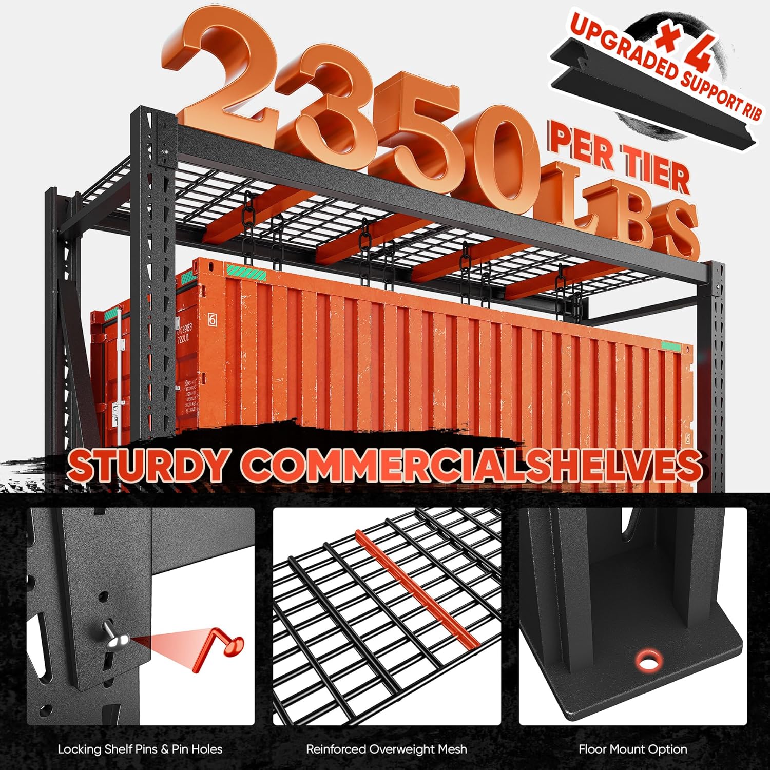 • 【67.6''Wx23.7Dx72''H Perfect Size】Garage shelving units extra wide and perfect size can hold a lot of items to meet your needs, suitable for garage, commercial storage, warehouse, storage room, office, basement.