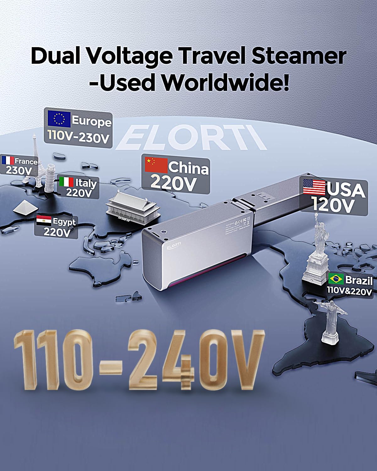 • Travel Steamer Dual Voltage 110-220V: Our dual voltage steamer automatically adapts to global power standards. Ensures reliable, consistent steam for suits, dresses, and delicate fabrics, perfect for Europe and international business trip. 【Note】Operates at 10A; if using a travel adapter abroad, make sure it’s rated for 10A, or it won’t work