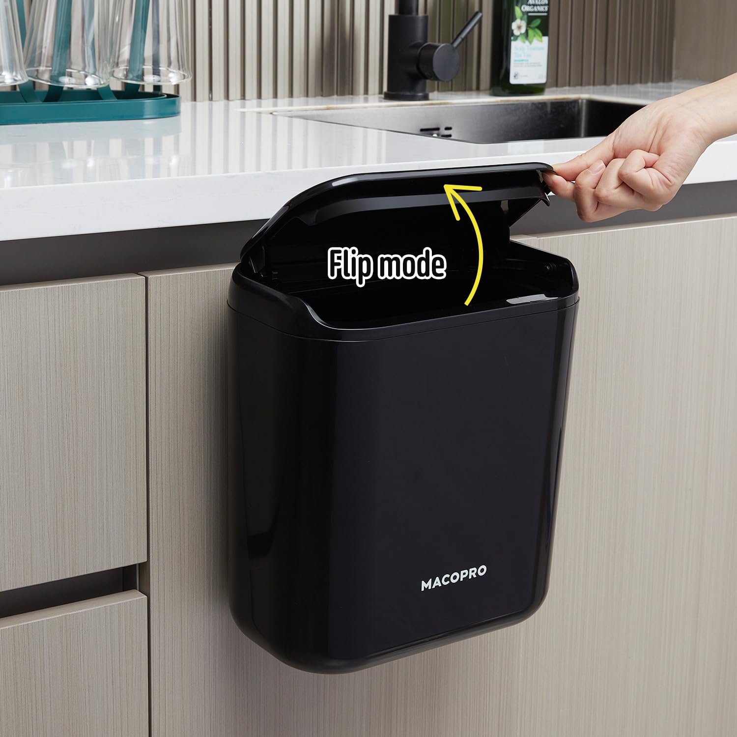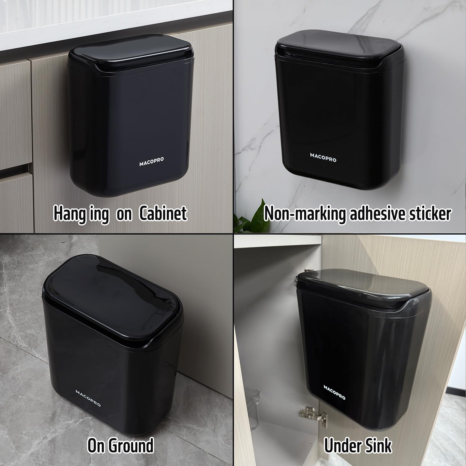 • Stable Installation, Thoughtful Details:It uses a special hook for hanging bin and adhesive pad for installation, no need for drilling, and is stable whether hung as a cabinet door trash can or stuck on the wall. The bucket body has a built-in fixing structure, and with the design of small trash bin with lid, it prevents garbage bags from slipping, making it more convenient to use.