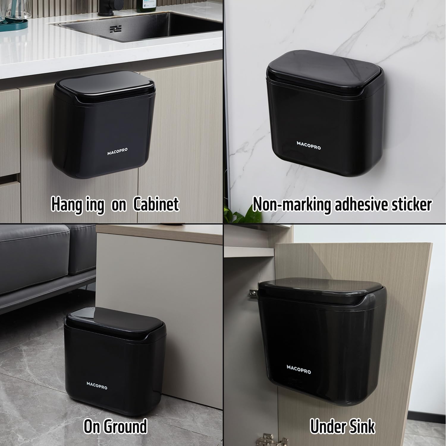 • Kitchen-Specific, Full-Coverage Multi-Form Storage:As a professional kitchen compost bin and food waste bin for kitchen, it can accurately store kitchen waste such as fruit scraps and vegetable peels. With two installation methods of hanging trash can and wall mount trash can, it can be hung on cabinet doors, stuck on kitchen walls, or used as a table top trash can or under sink trash can, adapting to all kitchen scenarios.