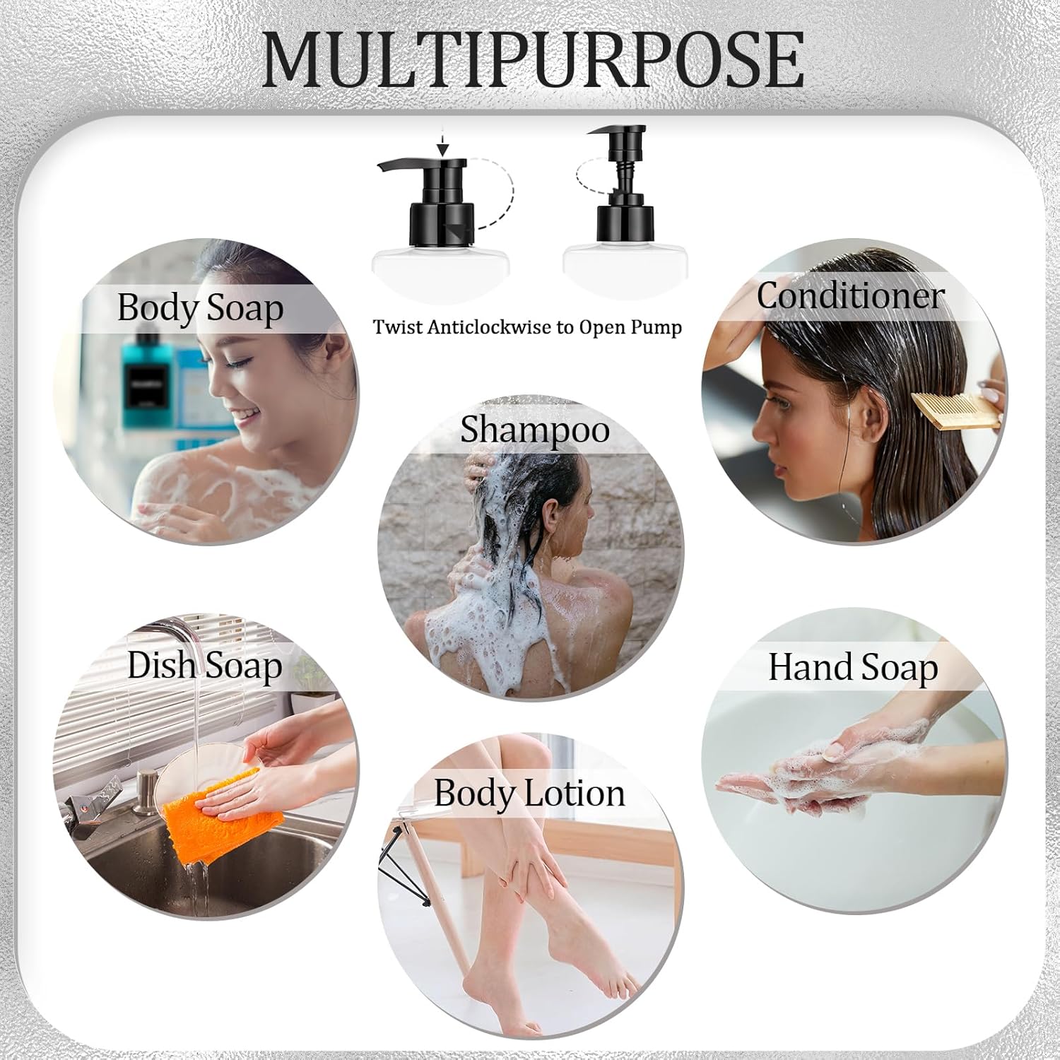 • Broad Usages: shampoo containers for shower are suitable for bathrooms, bedrooms, kitchens, travel, hotels, beaches, swimming pools, offices, shops, restaurants, salons and more, to store shampoos, conditioners, body washes, lotions, liquid soaps, body washes, hand soaps, DIY cleaners, essential oil blends, skin oils, coconut oils, cosmetics and so on, practical and delicate