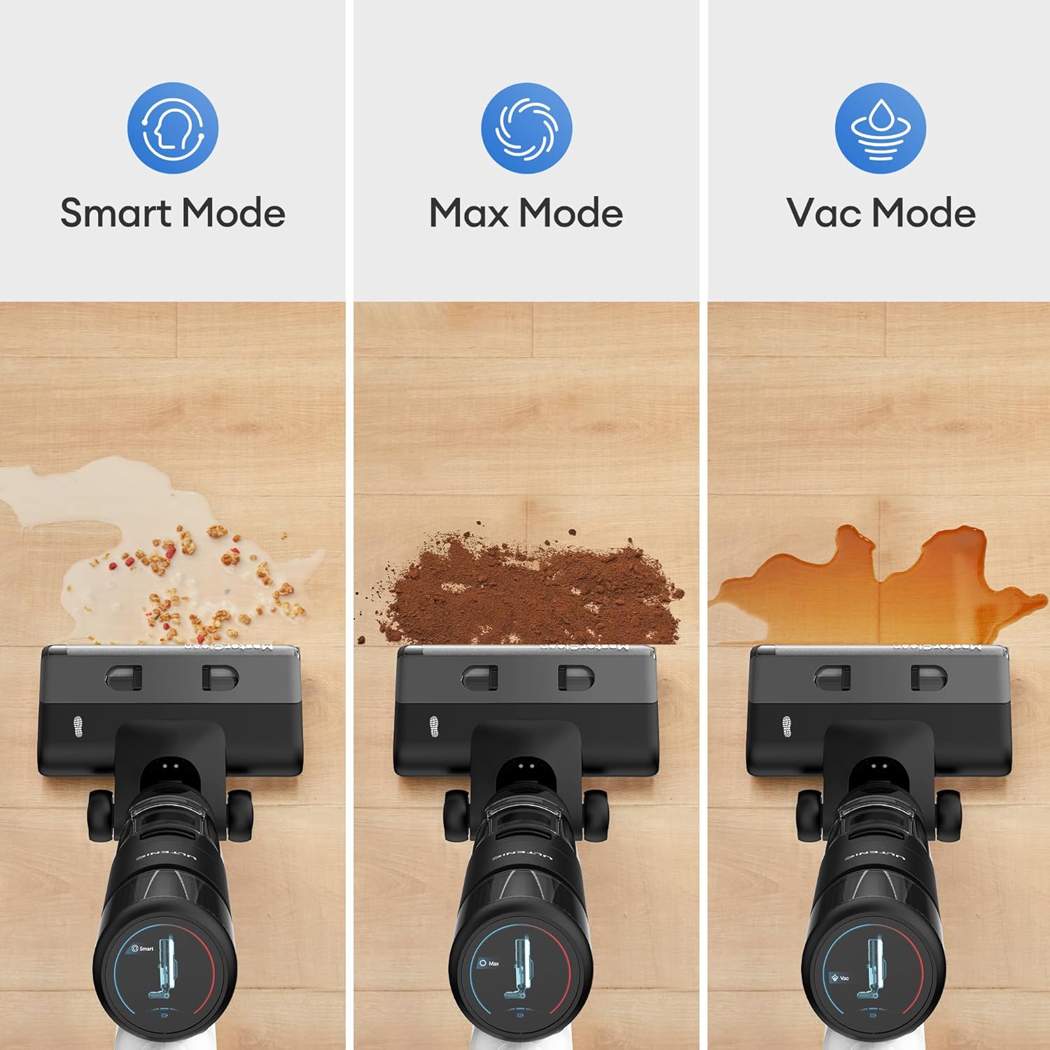 • Smart Mess Detection: The built-in smart detection system automatically optimizes power suction to clean all stubborn dry and wet messes like spilled juice or sticky messes. The vacuum mode dries floors in seconds, leaving no water streaks—great for families with kids and pets.