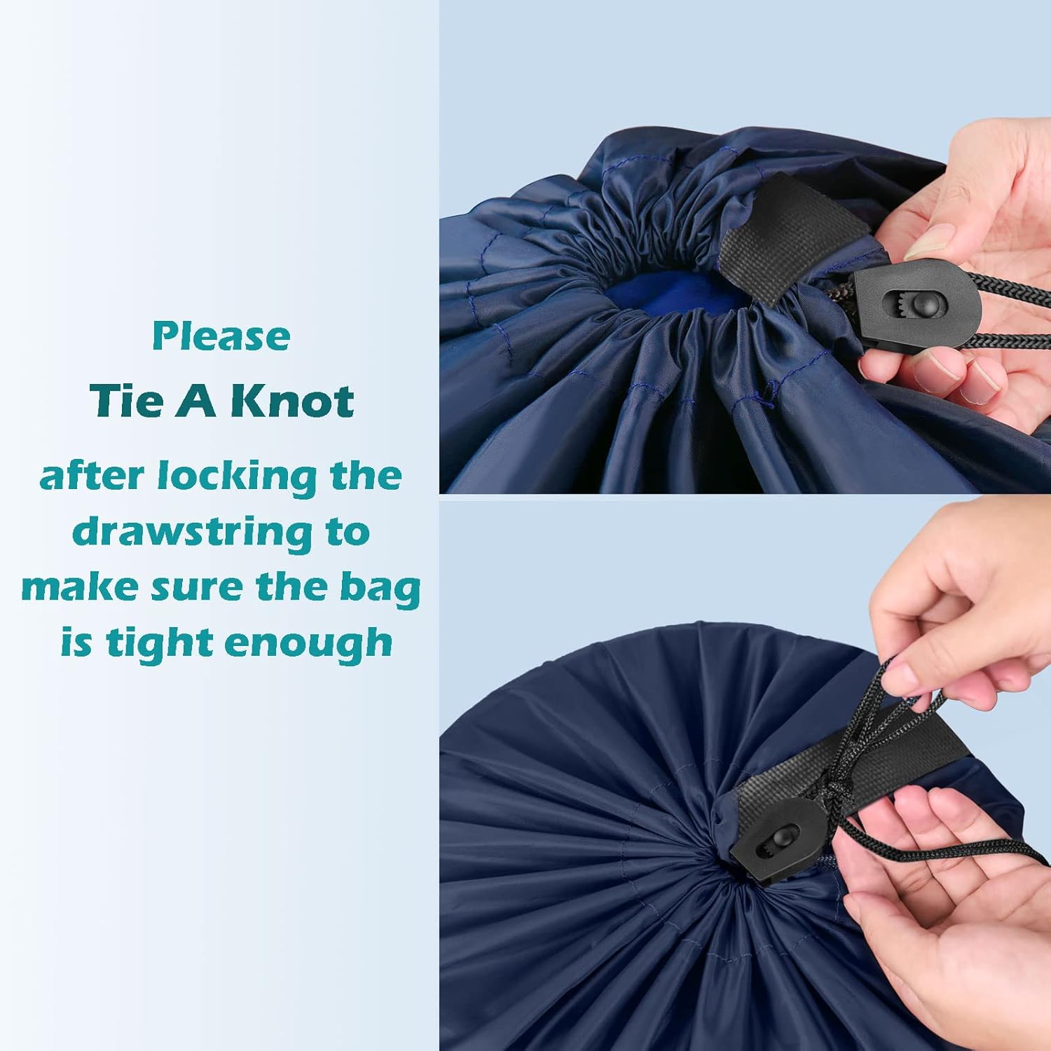 • Upgraded Drawstring Closure: The laundry bags equipped with a pie-type locking drawstring make the closure tighter.Please note that a tight knot over the drawstring cord lock can prevent the spill of clothing, keeping the clothes safe in the bag.