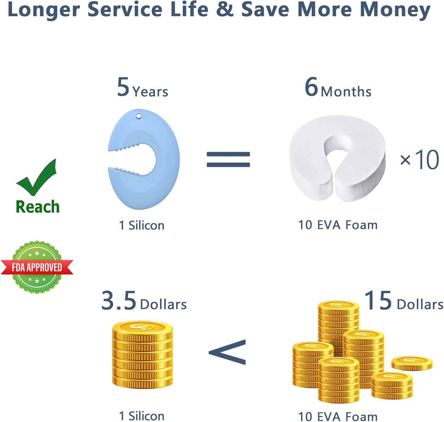 • Super Long Service Time: Neobay baby proof door stopper is made from durable silicone which can serve up to 5 years, about 10 times longer than foam door stopper. Perfect for continuously protecting the little hands and fingers of your baby, toddler, or child from getting pinched or jammed due to a door closing.