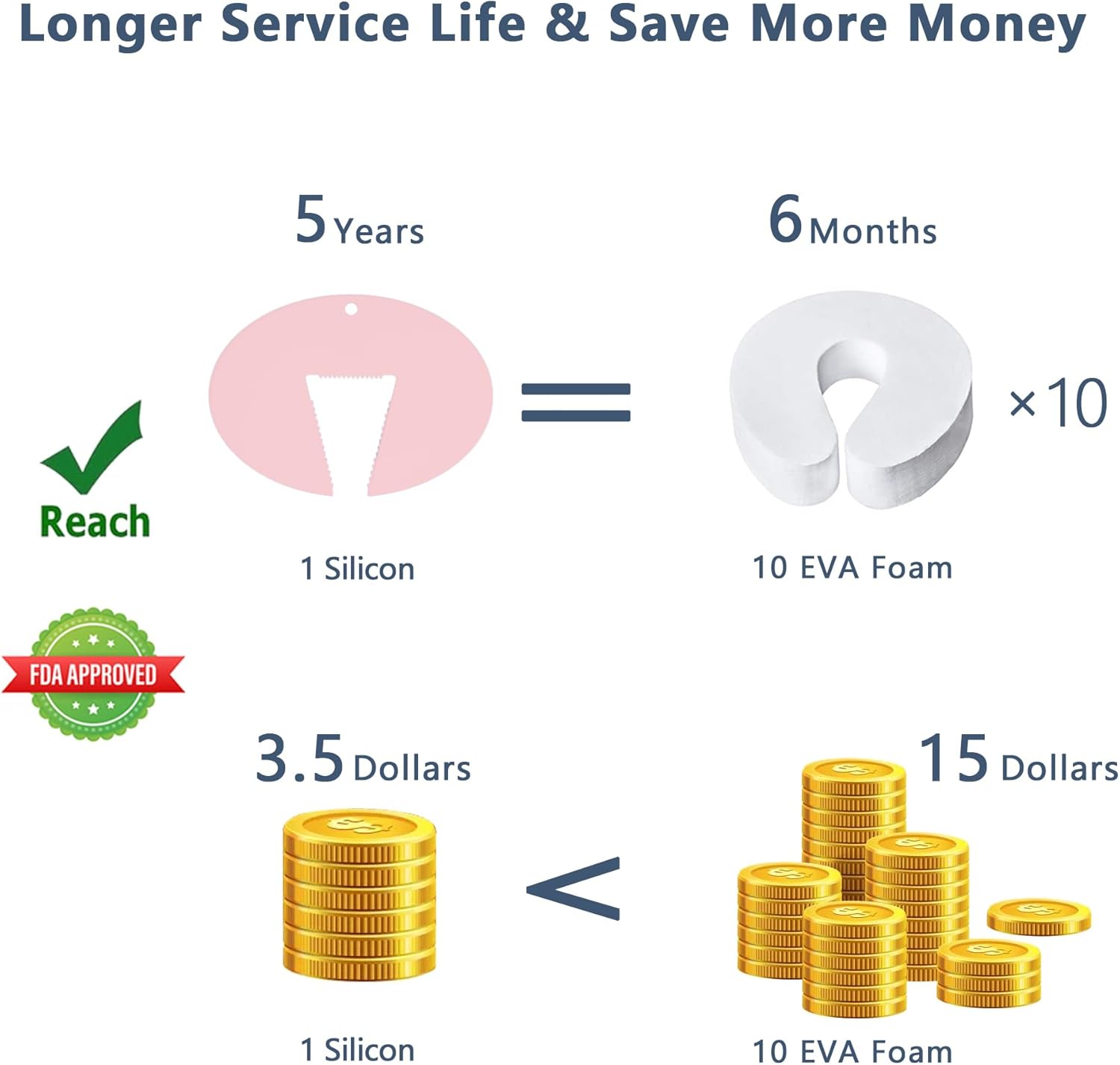 • Super Long Service Time: Neobay baby proof door stopper is made from durable silicone which can serve up to 5 years, about 10 times longer than foam door stopper. Perfect for continuously protecting the little hands and fingers of your baby, toddler, or child from getting pinched or jammed due to a door closing.