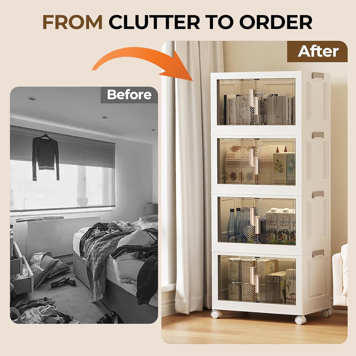Elegant 4 Tiers Stackable Storage Bins for Home Organization, Moveable Plastic Storage Bins with Lids, Easy Assembled Storage Box for Closet Organizers and Storage Dorm 22" W x 12.4" D x 49.4" H