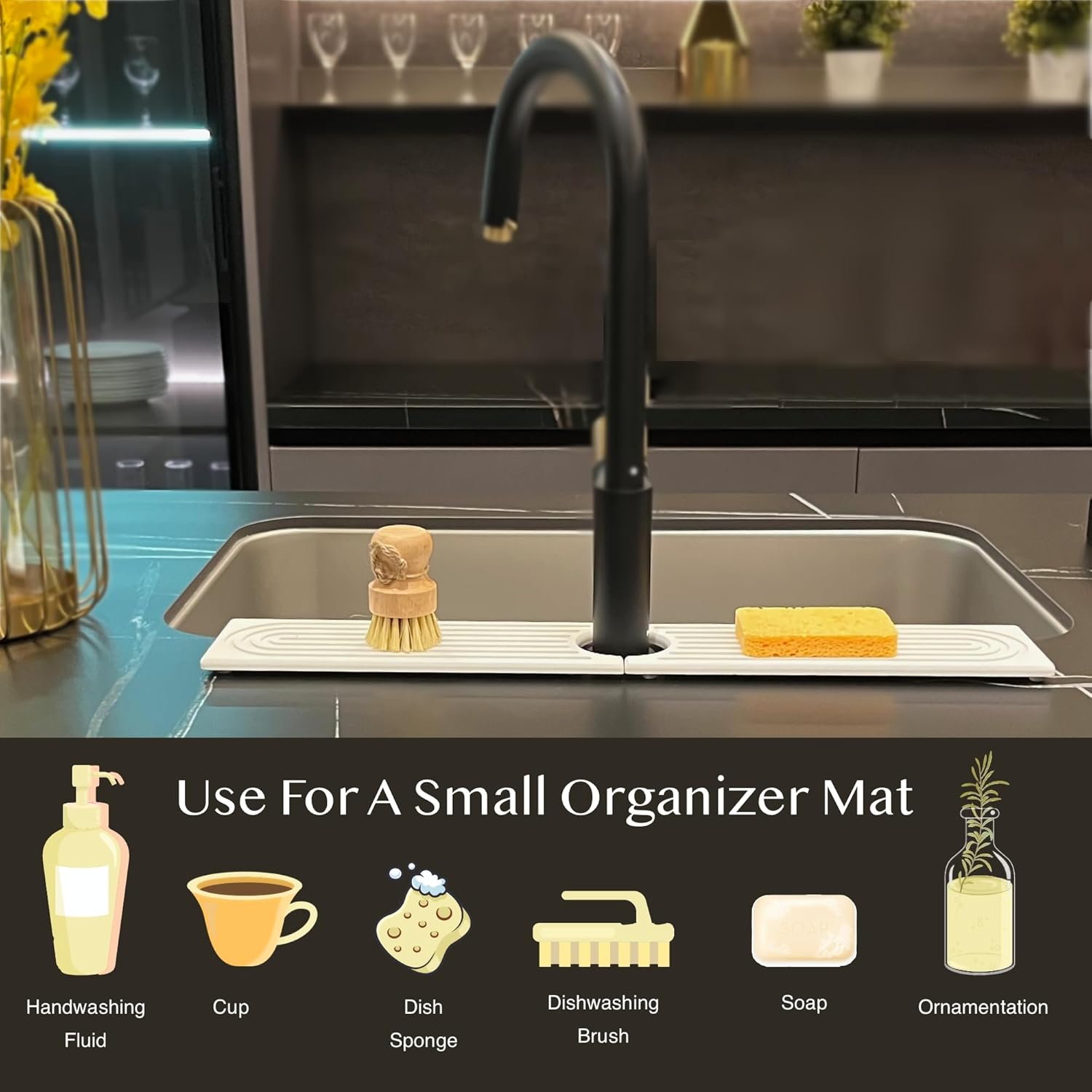 Faucet Mat for Kitchen Sink, Stone Drying Mat for Kitchen Counter, Stone Mat Bathroom, Kitchen Mat, Sink Mat, Water Absorbing Stone Tray for Sink, Bathroom Stone Mat(WHITE, 23.6 * 4")