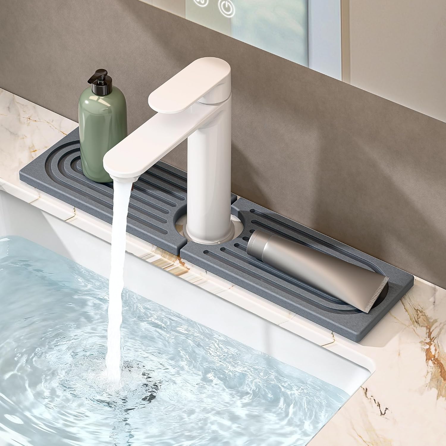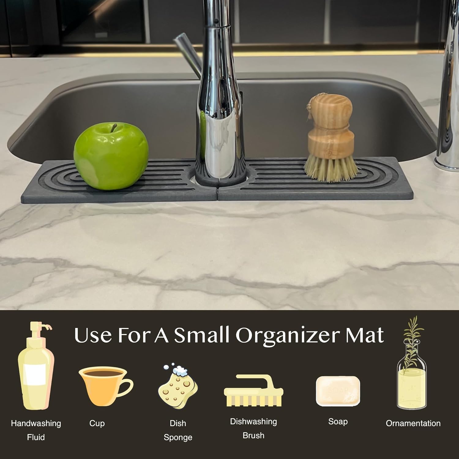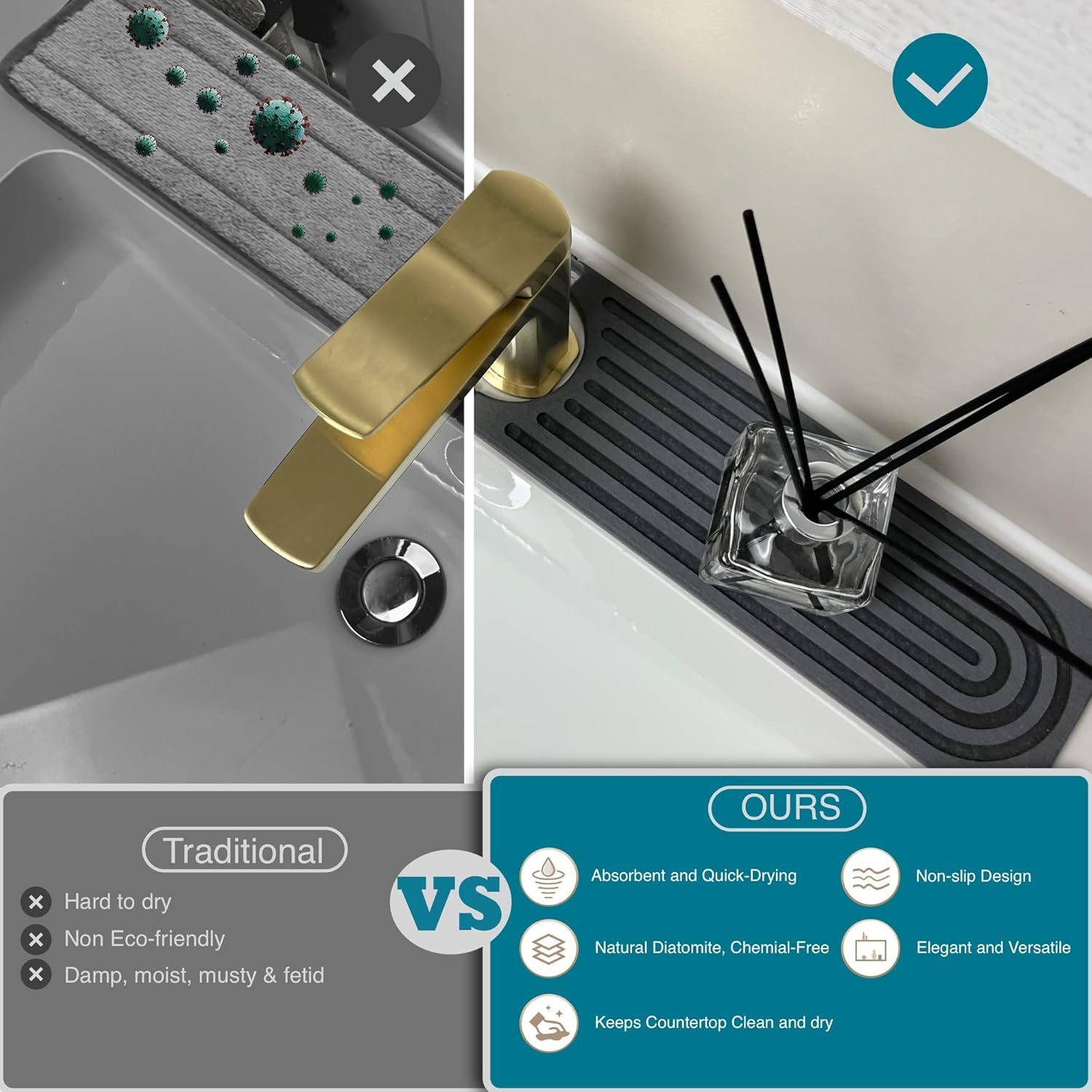 • Drying Fast: Our Faucet mat for kitchen sink is crafted from natural diatomacues earth. The diatomite stone's small holes enable amazing water absorption, quickly soaking up splashes and self-drying within minutes. Say goodbye to annoying drips and keep everything dry.