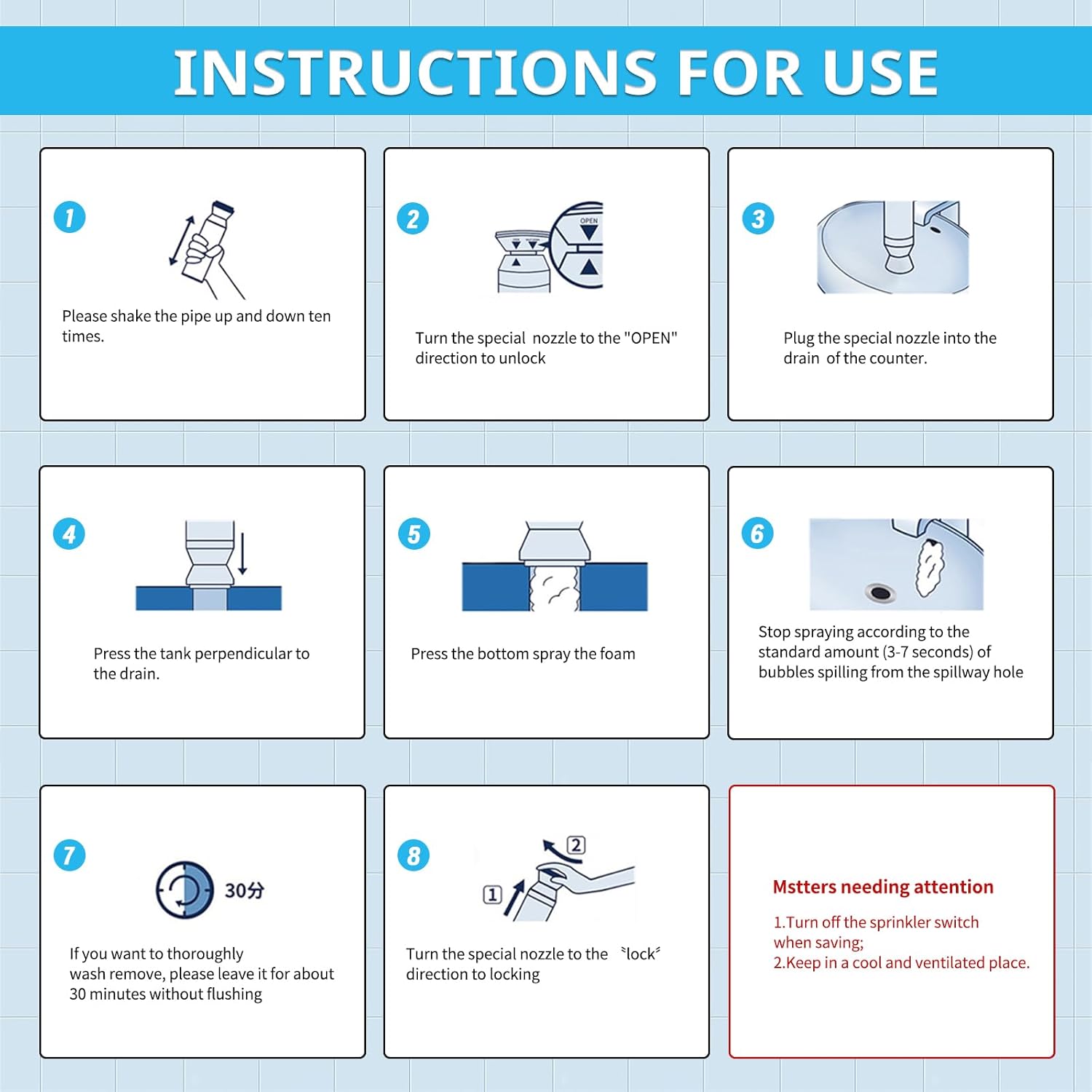 • [Safety Materials] - The Foaming Drain Cleaner is crafted from a gentle formula that poses no harm to pipelines. This foaming drain cleaner is safe for all types of pipes and plumbing. It cleans effectively without causing damage, perfect for bathroom sinks, kitchen sinks, and bathtubs.