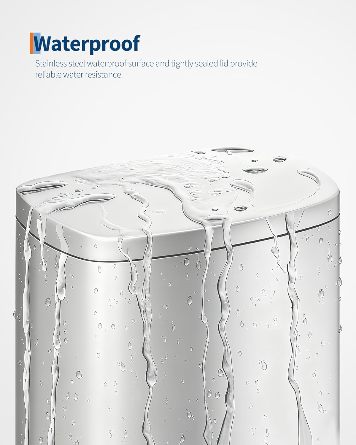 • [MINIMAL FORM, EXQUISITE DETAIL] – The Garvee stainless steel kitchen trash can boasts a fingerprint-resistant finish that wipes clean in seconds. The thick lid with extended overhang lip conceals bag edges for a seamless profile, while anti-slip rubber feet keep the bin firmly in place on tile, hardwood, or low-pile carpet