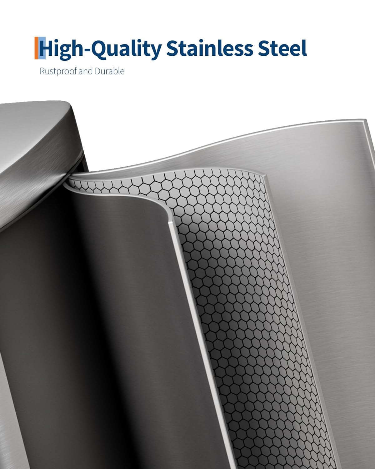• [HIGH-QUALITY MATERIALS] – The Garvee large trash can with lid is engineered for longevity. Its 410 Garade ferritic stainless-steel shell resists rust and scratches while retaining lasting luster. The polypropylene inner buckets repel stains, odors. The thick ABS lid with stainless overlay withstands dents, stains, odors; the industrial-steel pedal endures 150,000+ steps, and the ABS hinge survives over 300,000 open/close cycles