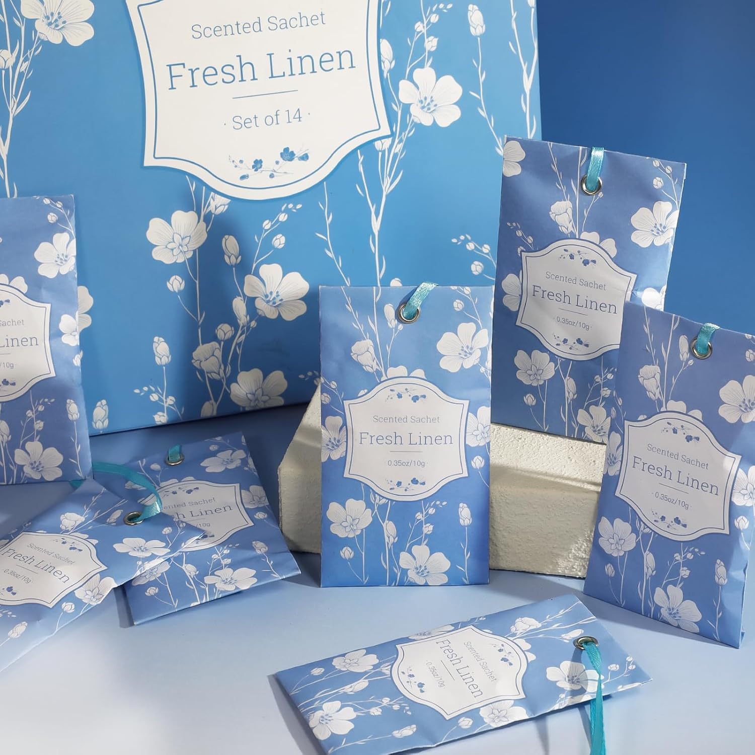 SCENTORINI Scented Sachets for Drawers and Closets, Linen Scent 14 Pack, Long-Lasting Sachets Bags Wardrobe Freshener, for Shoe Wardrobe, Cupboard