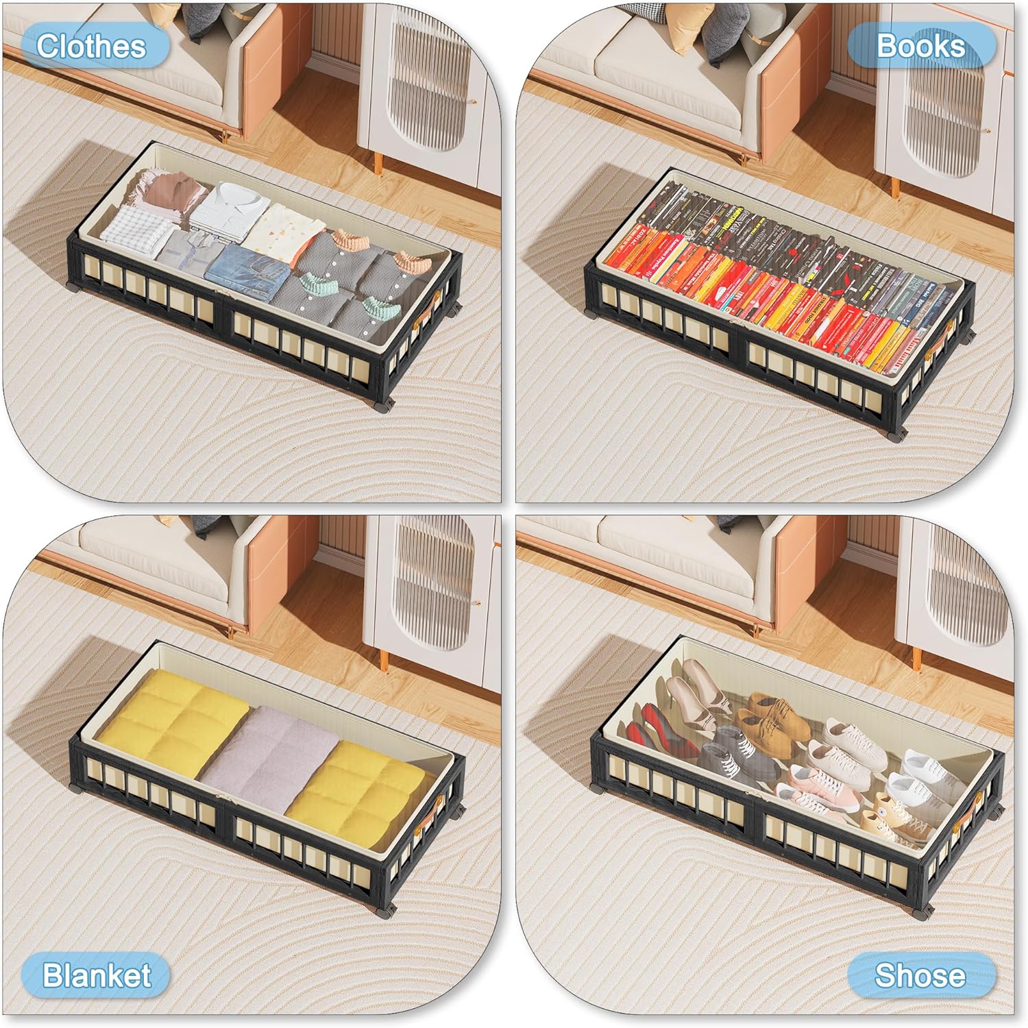 efluky 2-Pack Bamboo Under Bed Storage with Wheels, Rolling UnderBed Storage Basket with Large Dust Bag, Under Bed Storage Containers for Bedroom, Dorm and Basement, Black