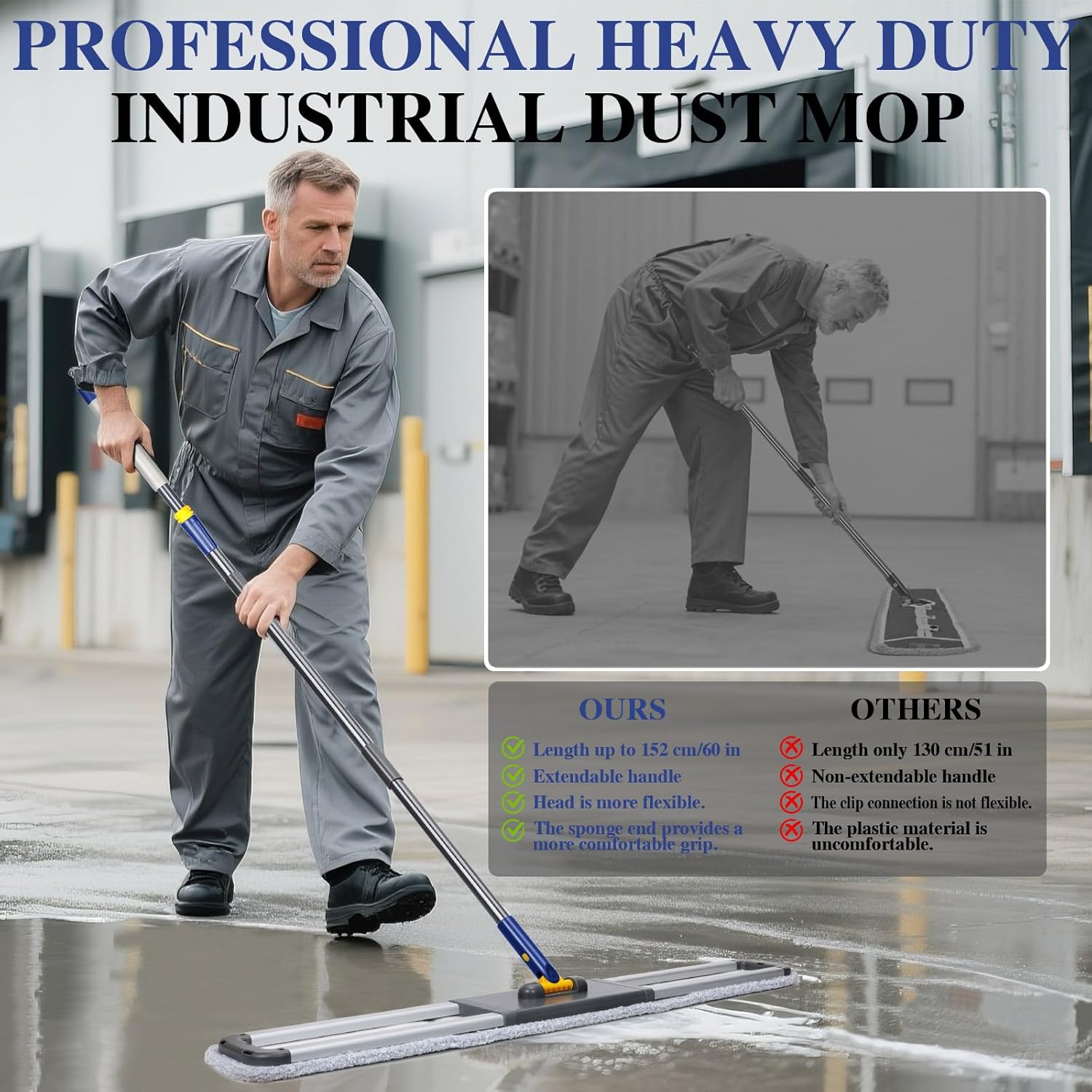 • Lightweight and Flexible: The aluminum wet mop base is durable yet significantly lighter, making cleaning easier. The dust mop head can rotate 360°, making it easy to clean under beds, tables, cabinets, crevices, and any other hard-to-reach areas. The lightweight and flexible wide mop saves time and effort.