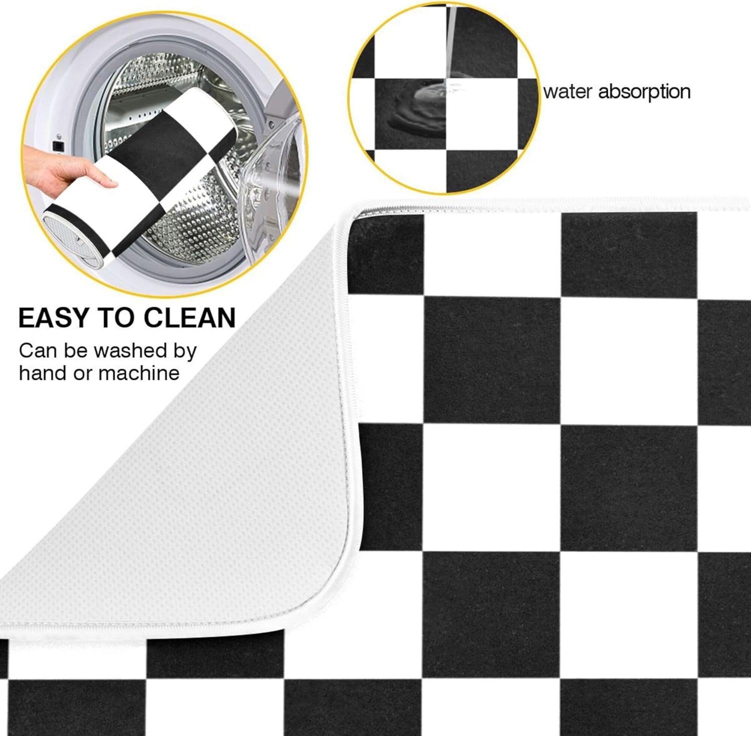 Black White Chessboard Dish Drying Mat for Kitchen Countertop 16x18 Plaid Checkered Rectangle Small Drying Mat Reusable Quick Dry Dish Sink Absorbent Mats Easy Clean Decorative Home Essentials