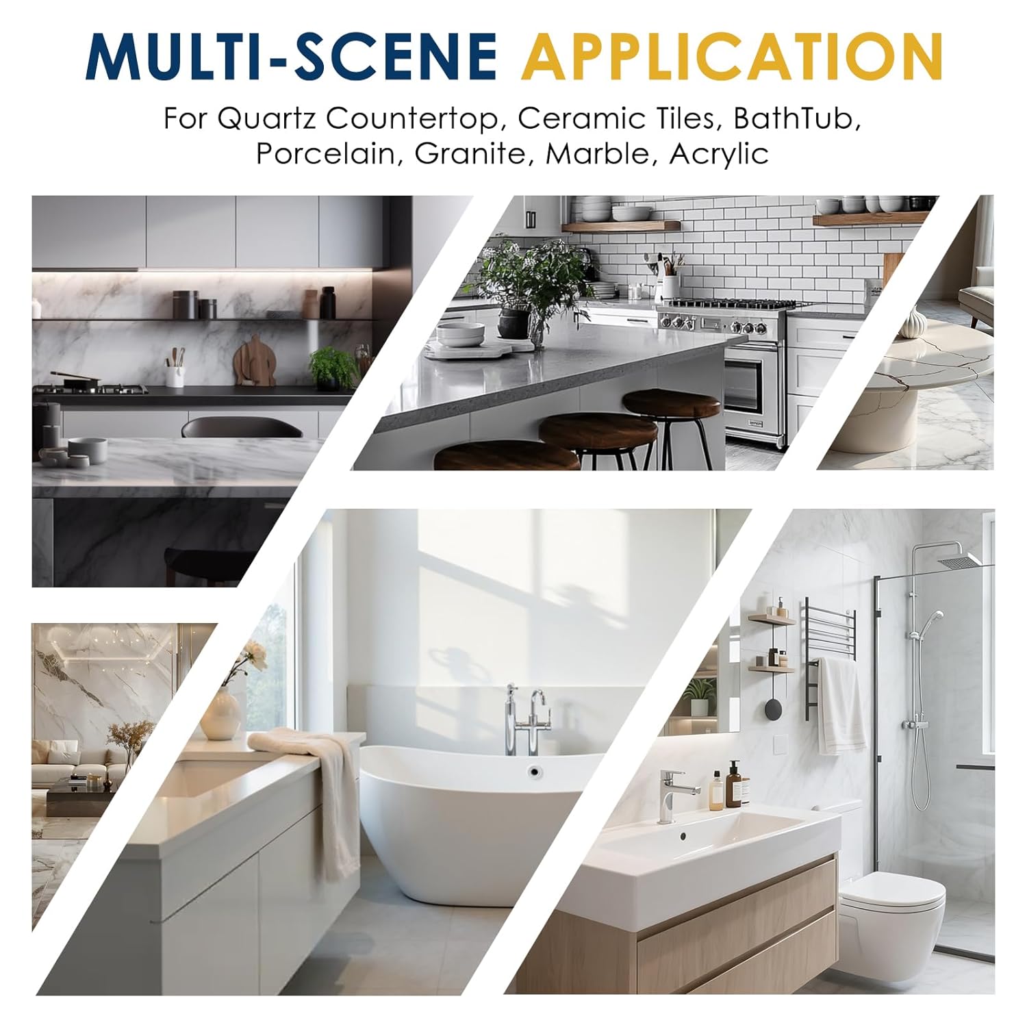 • 【High Quality 4 Color Filler Material】 - Offer 4 color filler material (white, beige, gray, transparent), which are safe, durable and leave no trace. You can choose the best match color to repair different areas, such as countertop, sinks, bathtubs, toilet, floor, home kitchen etc. While using, there is no need to adjust the proportion.