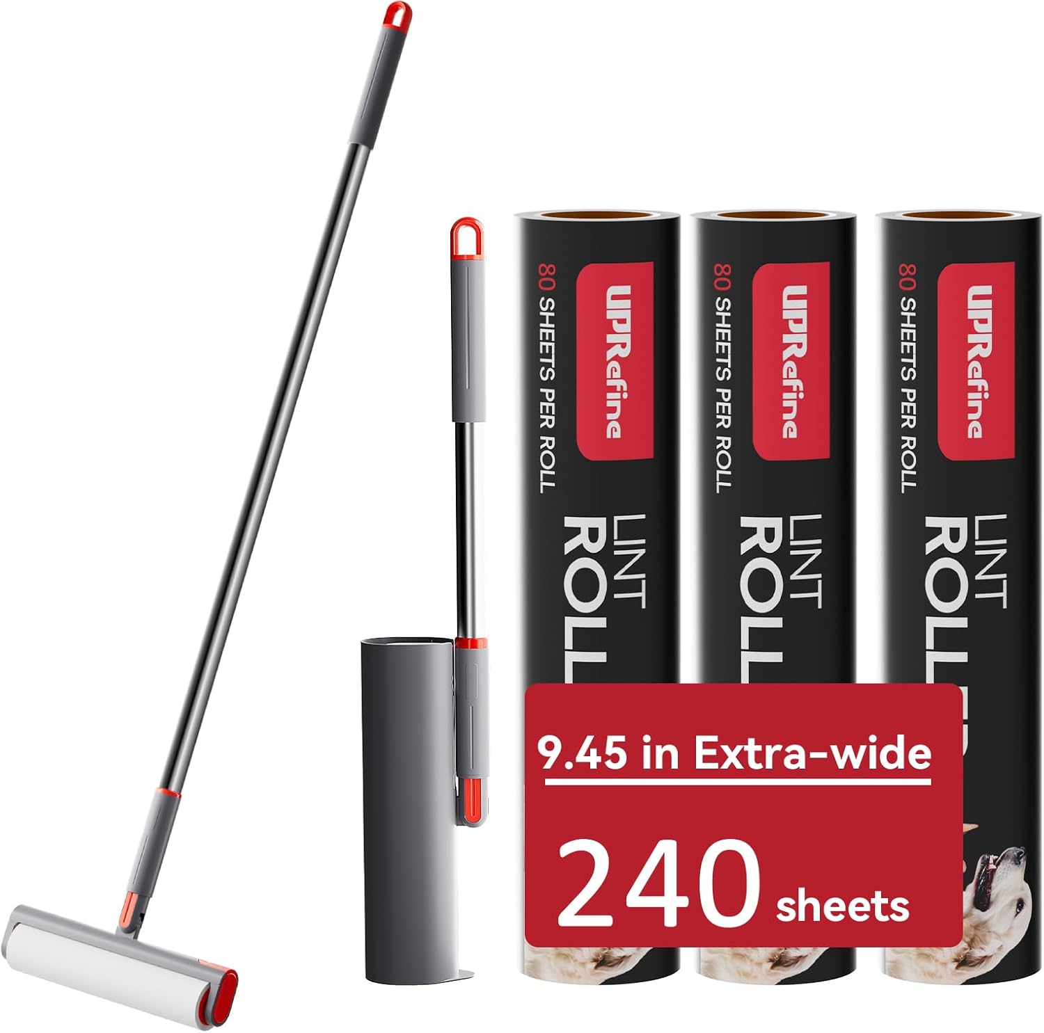 Large Lint Rollers for Pet Hair,Extra Sticky 9.45'' Giant Lint Roller with 240 Sheets Lint Rollers with 3 Extendable Handle for Floor,Carpet, Couch, Clothing, Animal Fur