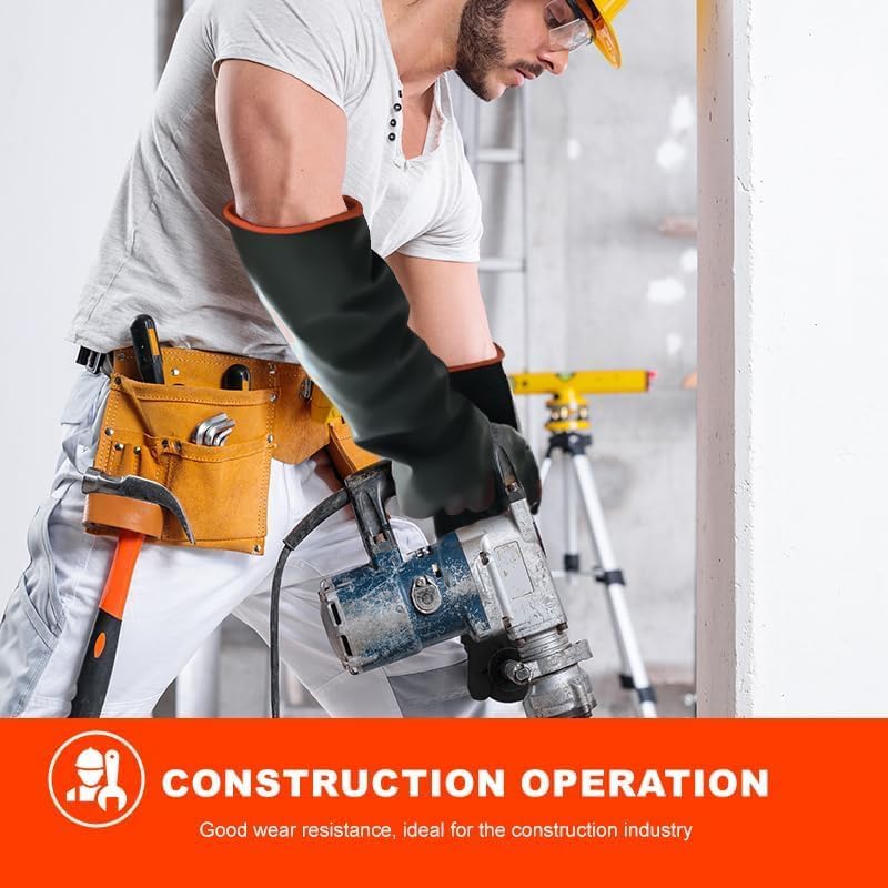 • Multiple Length Options:Available in 14", 18", and 22" lengths to suit various applications, providing tailored protection for forearms, elbows, and full arms., our oversized rubber gloves feature extended cuffs that shield your wrists and forearms from splashes, abrasives, and hazardous chemicals. Designed to accommodate various hand sizes, these gloves offer an exceptional fit while providing comfort and heat resistance for prolonged use.