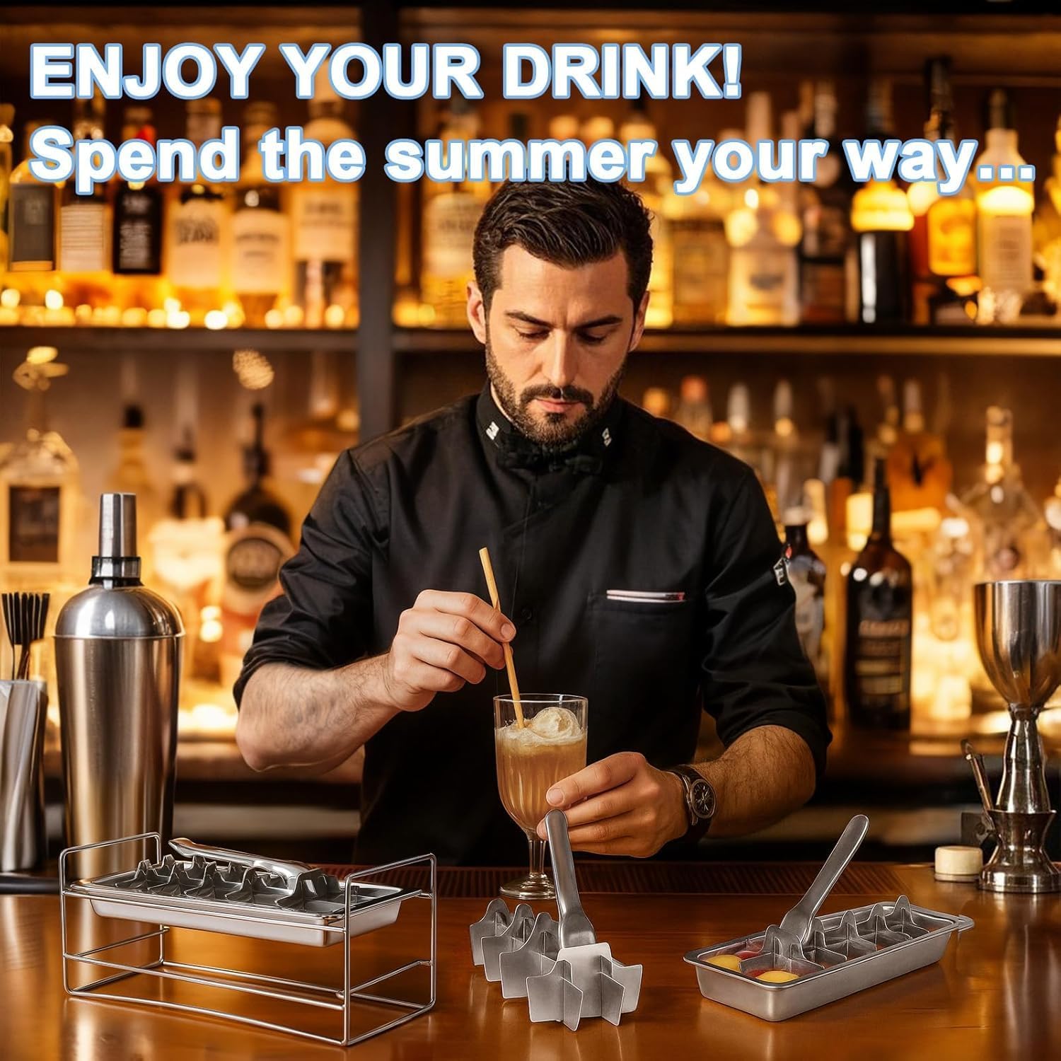 • VERSATILE USE: The metal ice tray is not only great for making scotch and whiskey ice cubes, it is also perfect for making vanilla ice cubes, frozen ketchup and other pastes to avoid food waste. You can also use it to make baby cold foods, frozen juices or fruits, etc. to add a touch of coolness to your summer.