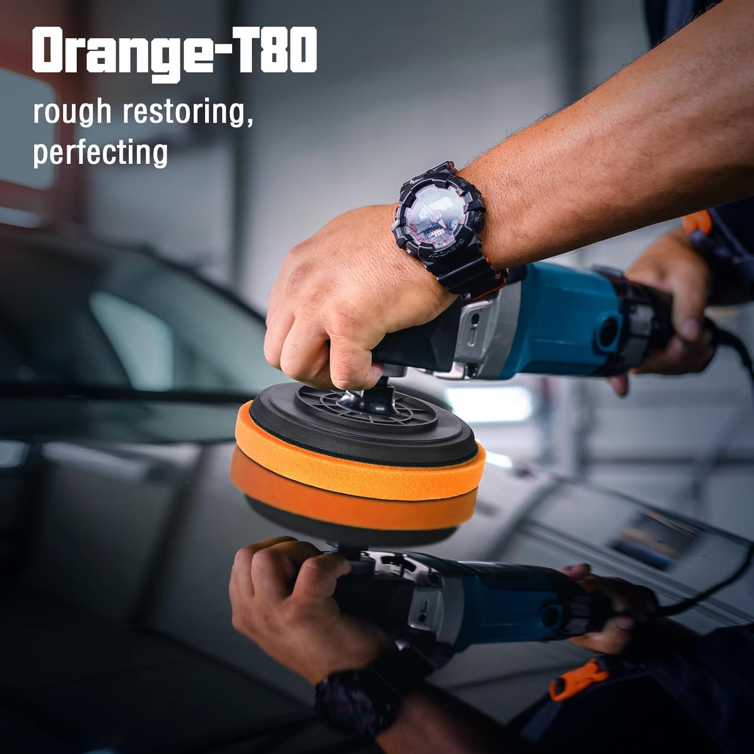• Reduced Heat Generation: Polishing pad adopts TRV-Tech & CIRCO-Tech. Buffing pads used in these foam pads incorporate specially designed pockets that prevent full surface contact between the pad and the painted surface. This design minimizes friction and reduces heat buildup during operation.