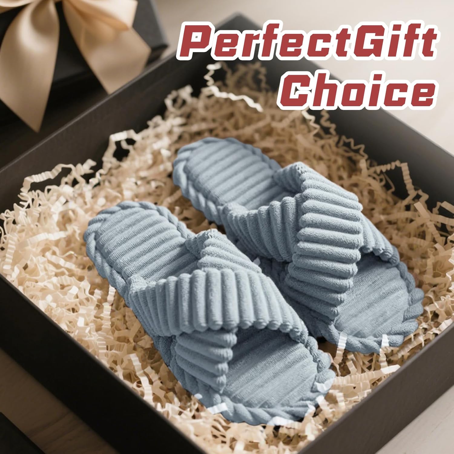 • ★Timeless Style Design - Designed with a stylish cross-band, these open-toe slippers keep your feet comfortable. With the quality short plush materials and fine workmanship, our slippers have a minimalist look and excellent texture, revealing an elegant and premium feel.
