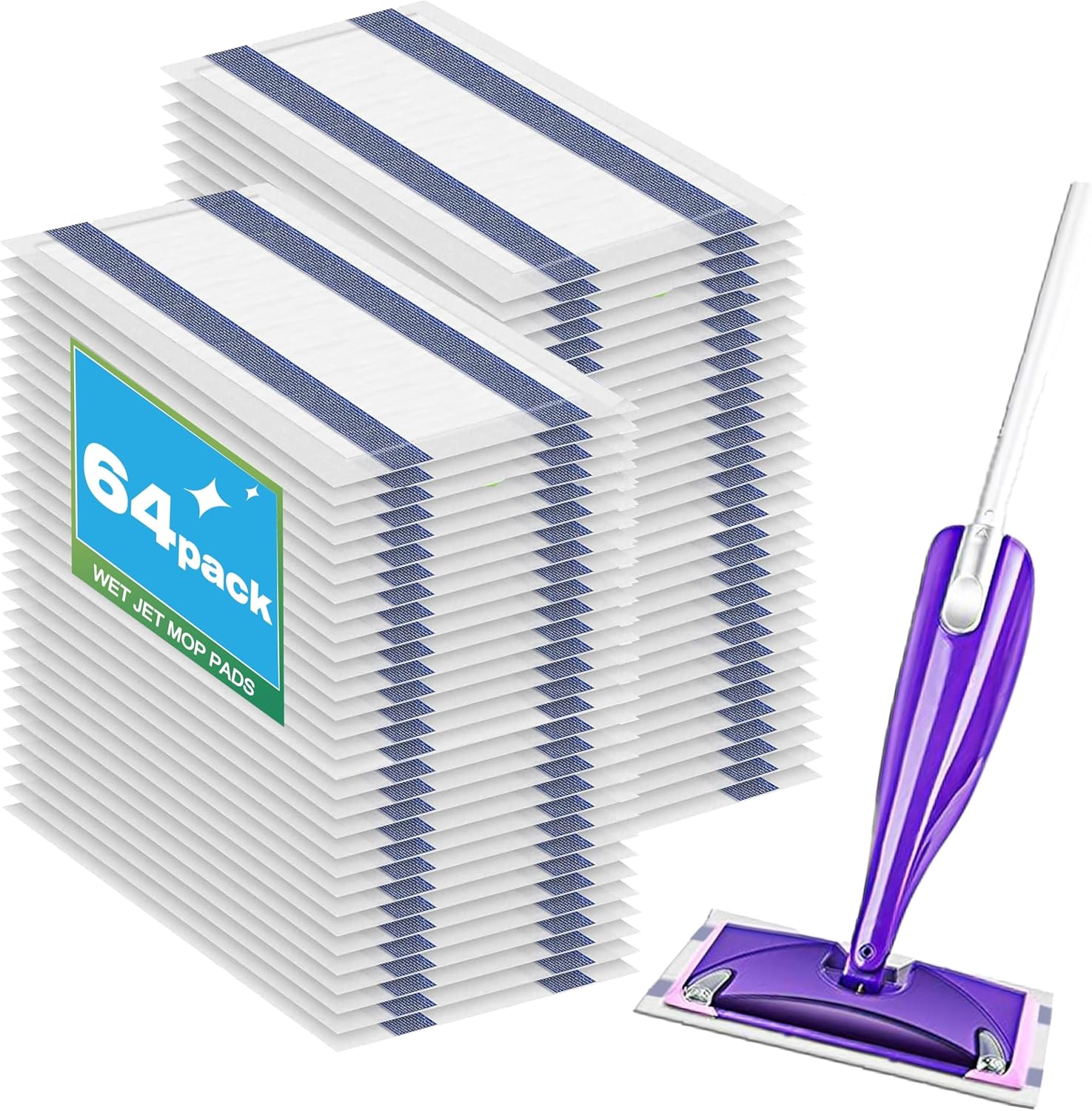 Upgraded Mop Pad Refill for Swiffer Wet Jet, 64 Counts Disposable Multi-Surface Cleaning Pads for Hardwood Floor, Tile, Laminate, Compatible with Swiffer WetJet Spray Mop, Dry and Wet Use