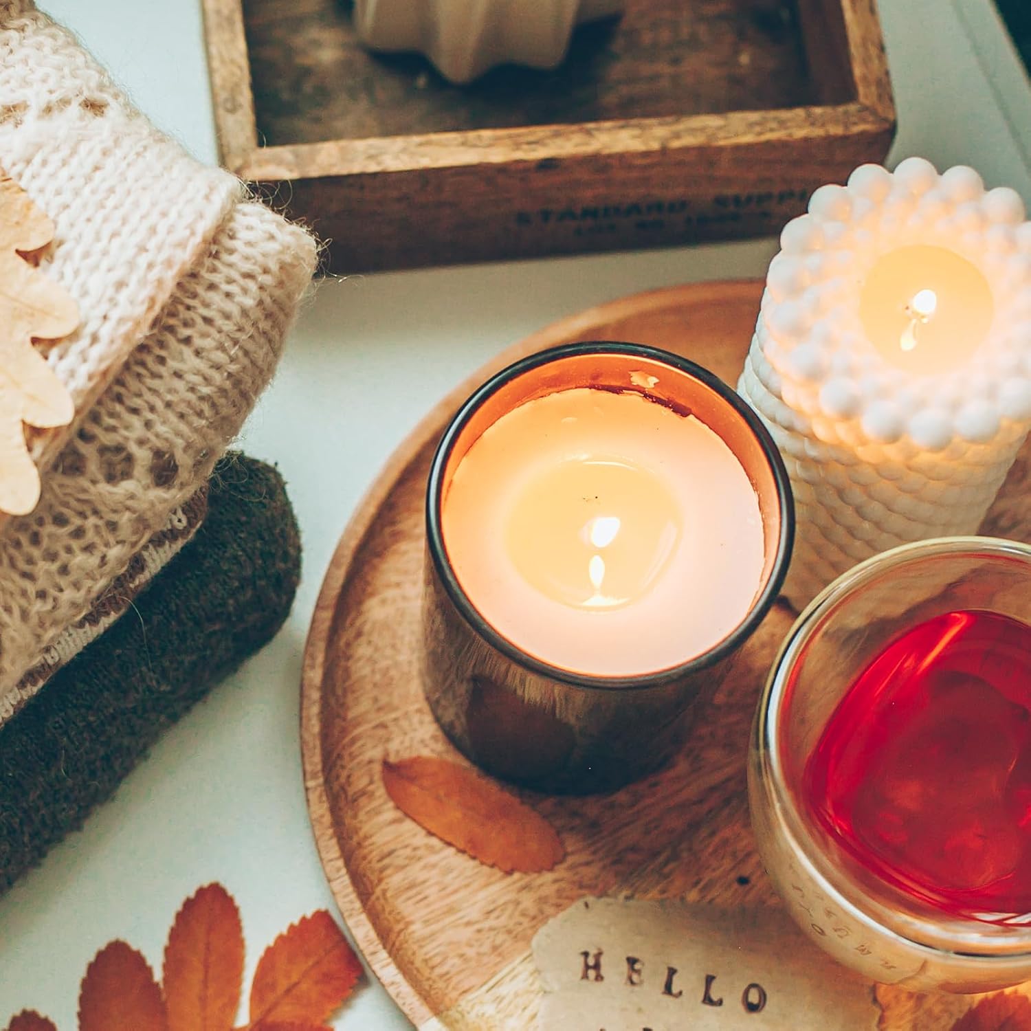 • [Glass Candle Vessel] A perfect fall candle jars for making candles. Designed with wood lid and glass , stylish appearance, simple and modern, can be used as elegant home decoration, candlelight through the candle jars, create a warm family atmosphere.