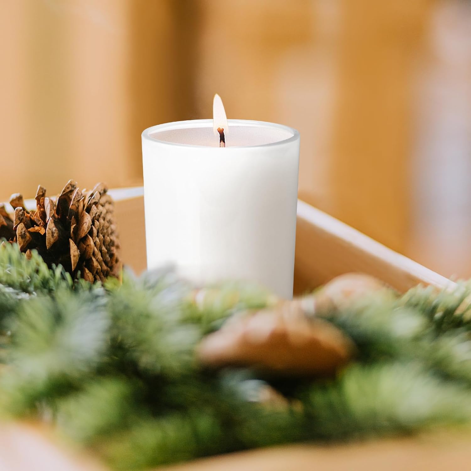 Thick Candle Jars for Making Candles 12 Pcs, 7 OZ Empty Jars with Wood Lids for Candle Making, Sample Container, Light White