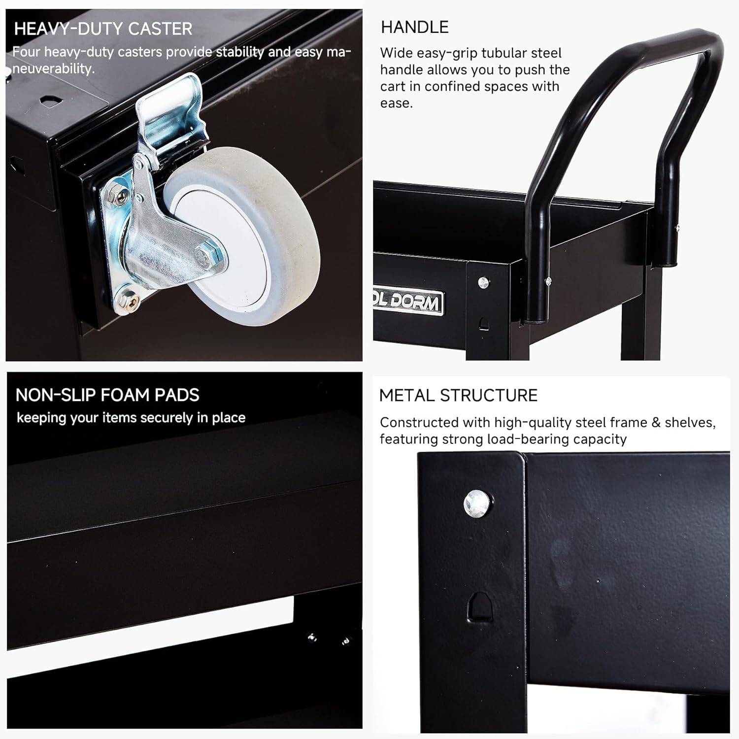 • Tool Dorm 3 Tray 29.3 inch Tool Cart, self assembly, 300 LBS Capacity Rolling Tool Carts on Wheels, Heavy Duty Utility Cart, Mechanic Tool Storage Cart for Garage, Warehouse and Repair Shop, Black