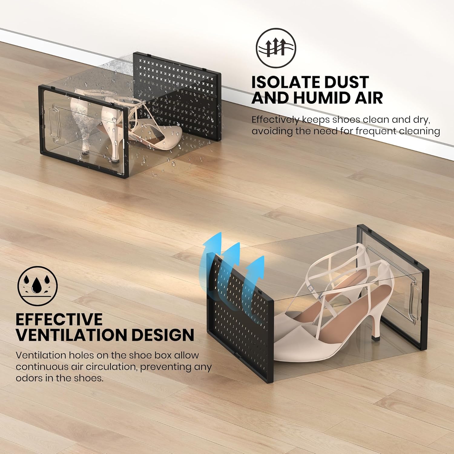 • Superior Shoe Organizer Solution: The lids of shoe boxes securely close to keep contents dust-free than traditional racks and provide better ventilation than closed shoe cabinets. Keeps your shoes fresh and dry while ensuring that they stay in great condition.