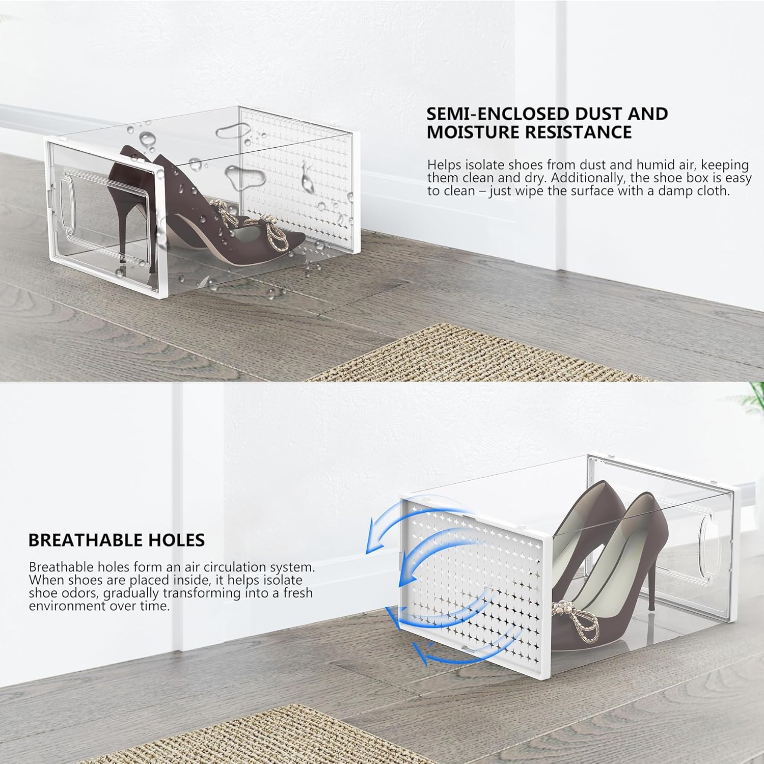 • Superior Shoe Organizer Solution: The lids of shoe boxes securely close to keep contents dust-free than traditional racks and provide better ventilation than closed shoe cabinets. Keeps your shoes fresh and dry while ensuring that they stay in great condition.