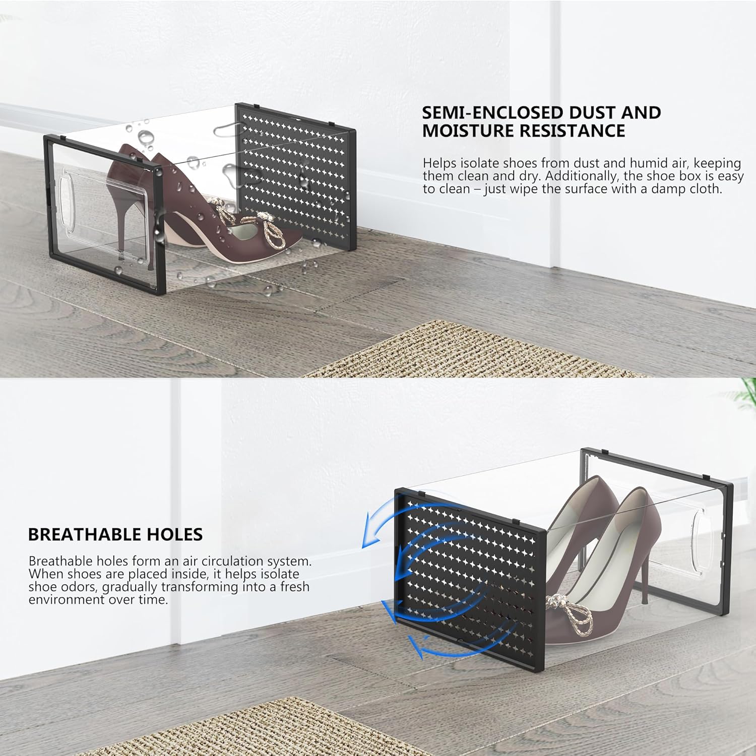 • Superior Shoe Organizer Solution: The lids of shoe boxes securely close to keep contents dust-free than traditional racks and provide better ventilation than closed shoe cabinets. Keeps your shoes fresh and dry while ensuring that they stay in great condition.