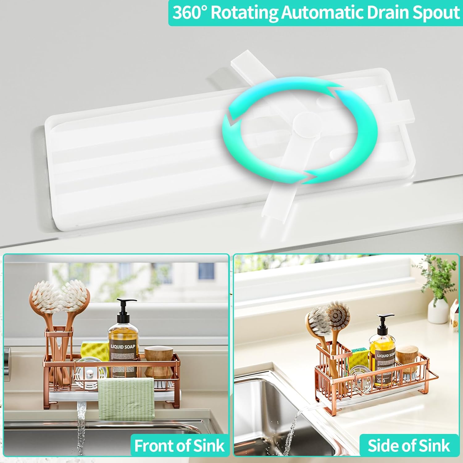 • [360° Rotating Drainage]: Tired of waterlogged counters? The 360° rotating drainage pipe on our sink caddy ensures your kitchen stays dry and clean, effortlessly directing water into the sink. The drain pipe is removable, so you can remove it for cleaning