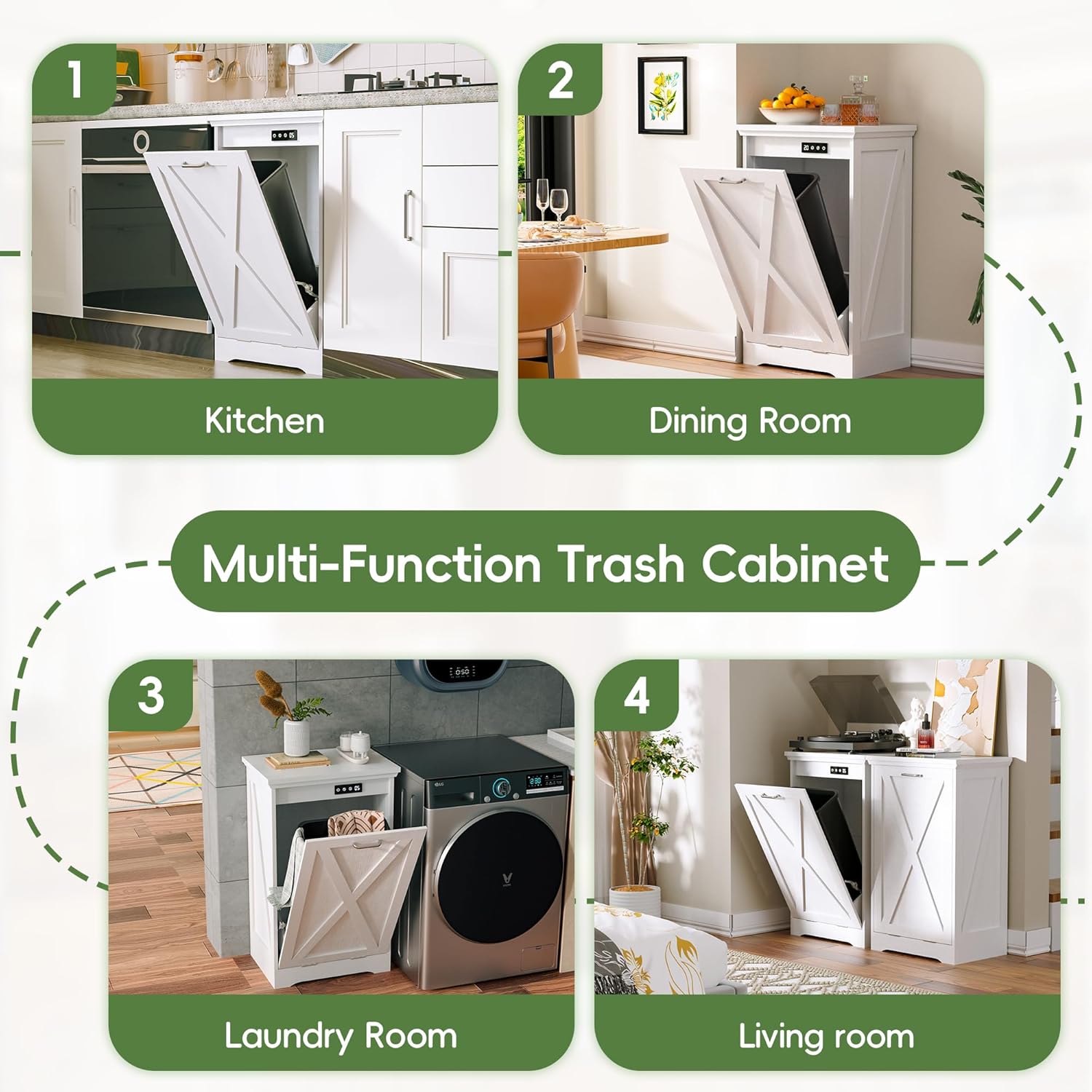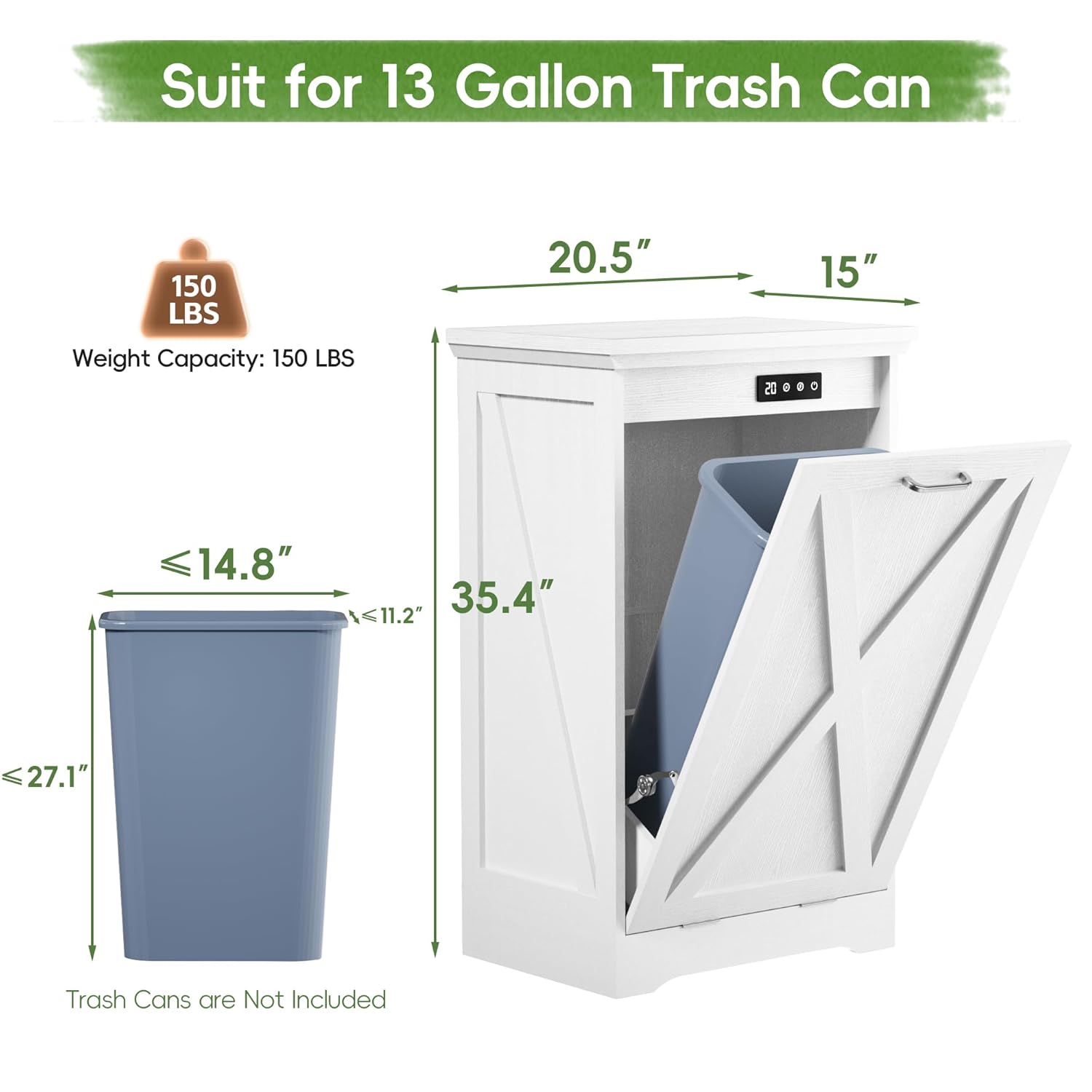 • Spacious Tilt-Out Storage Design: With dimensions of 20.5"W x 15"D x 33.5"H, this cabinet accommodates a 10-gallon trash bin, offering ample space for waste or recycling. The tilt-out design allows for easy access while maintaining a tidy appearance