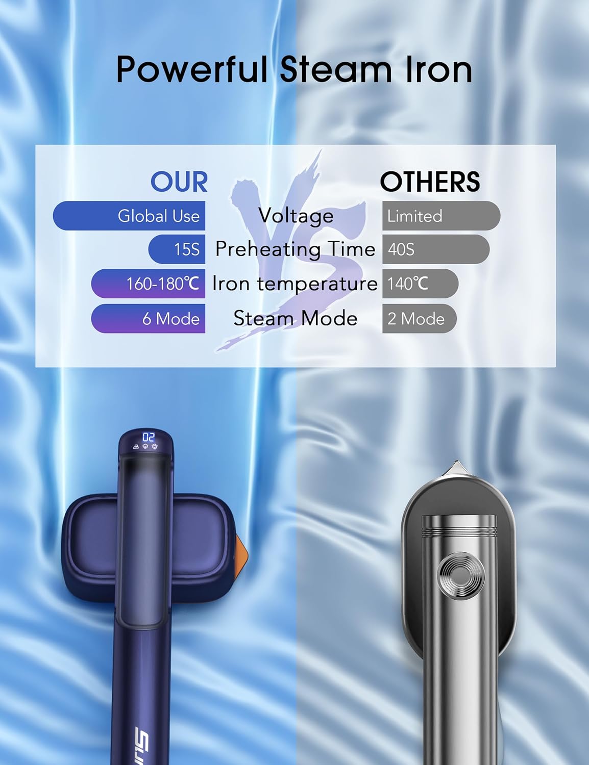 • 15-Second Instant Steam & 8-Min Continuous Power: 1200W dual-heat technology generates ready steam in just 15 seconds, with powerful steam flow lasting 5-8 minutes - enough to refresh 3 full outfits or large drapes. Features a 6.8ft swivel cord for versatile use.