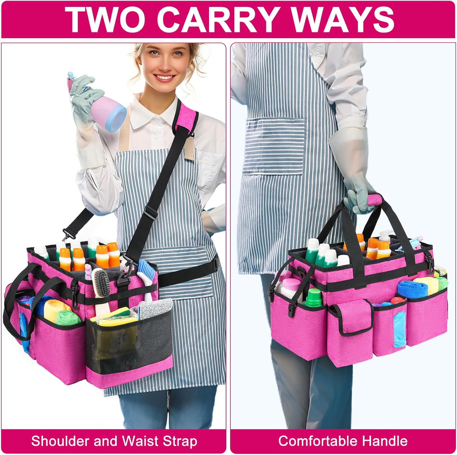 • Adjustable Shoulder Strap & Waist Strap: The cleaning caddy bag features an adjustable shoulder strap and waist strap, which can reduce stress for your shoulder and keep your body steady