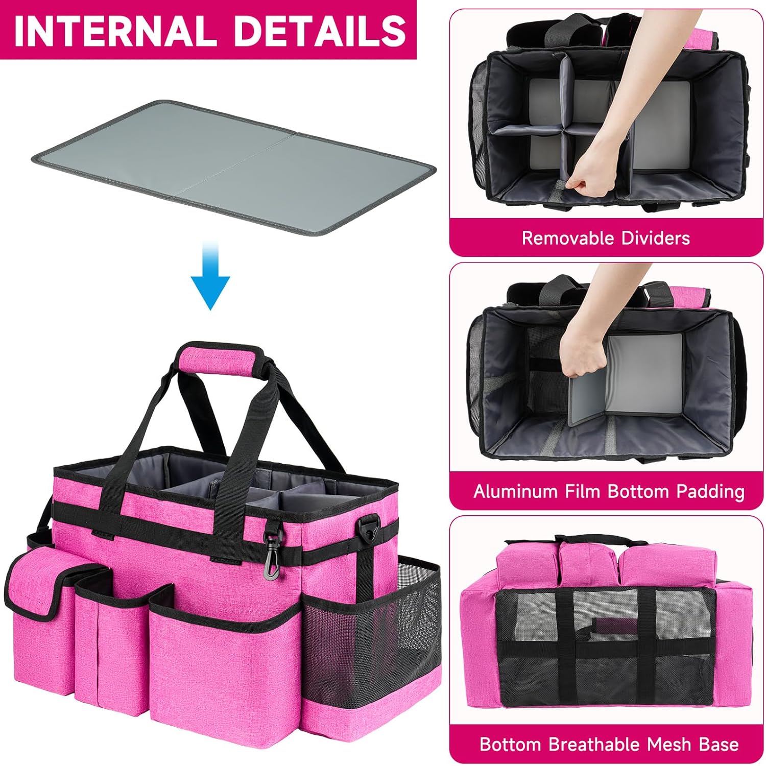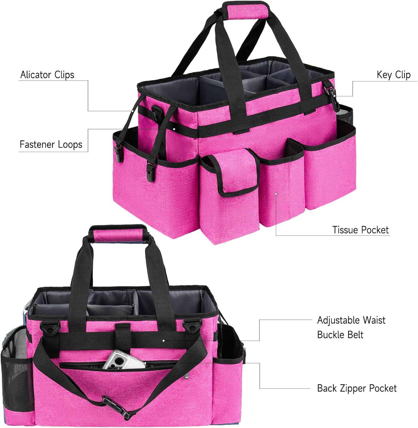 • Multi Pockets: Besides the large main compartment, this caddy bag has 6 pockets,the three front pockets can easily store some small item,large two sided pockets for storing large bottles, and back zipper pocket can store your valuable products