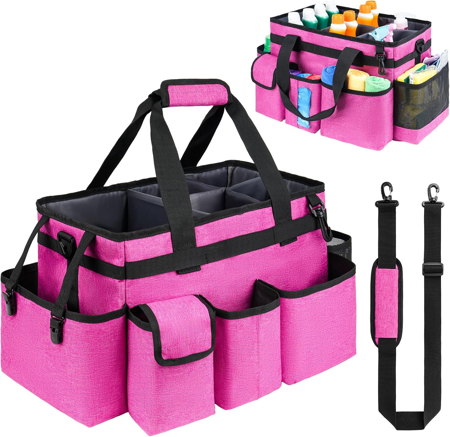 Cleaning Caddy Bag,Large Cleaning Supplies Organizer with Handle for Housekeepers,Red
