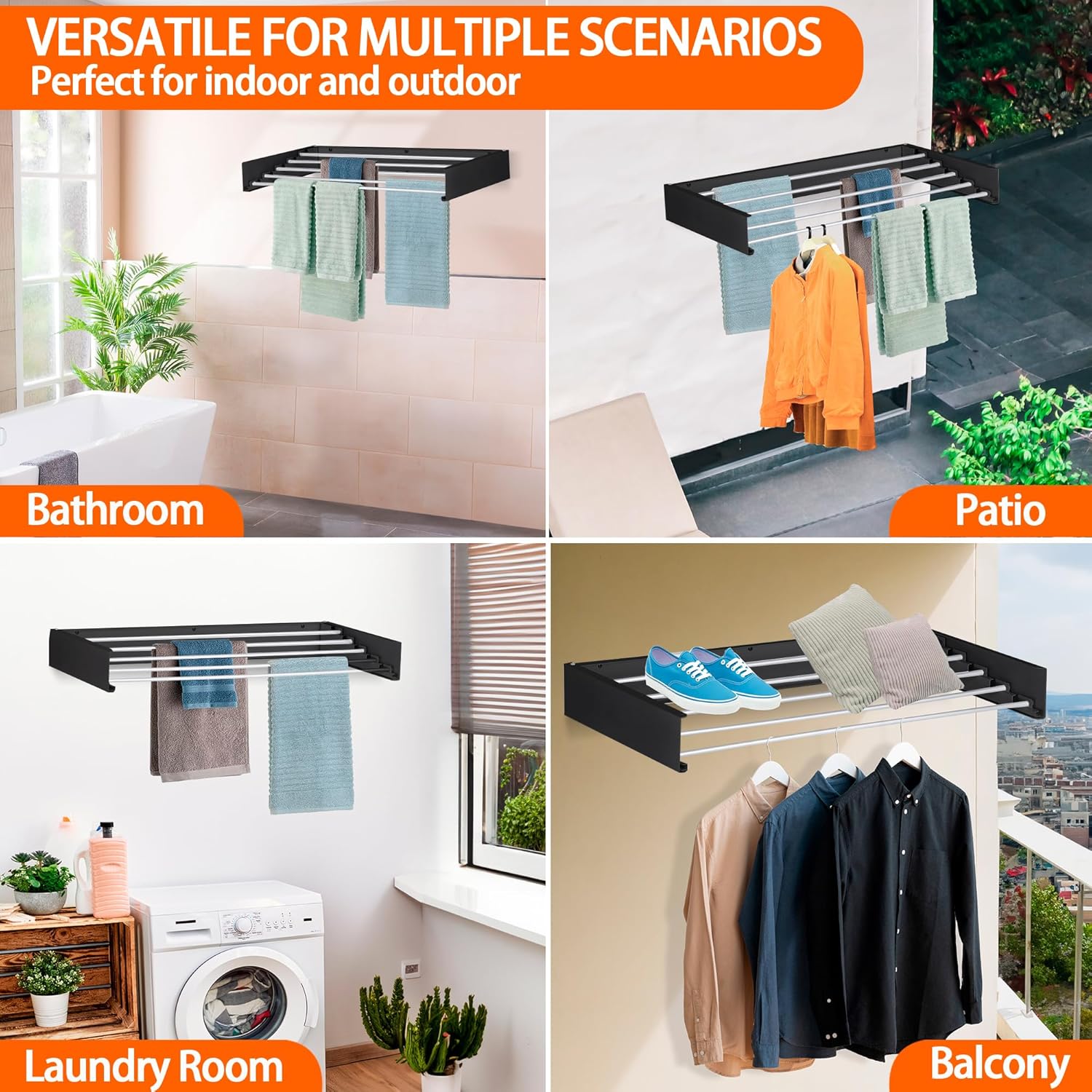 • Space-Saving Design - This laundry drying rack is adopted with collapsible design, so you can fold it when not in use; The compact and retractable wall-mounted design maximizes limited space, adds elegance to your space, and can help free up your floor space; Unfolded Size: 31.5"(L) x 15.7"(D) x 3.9"(H); Folded Size: 31.5"(L) x 1.0"(D) x 3.9"(H)
