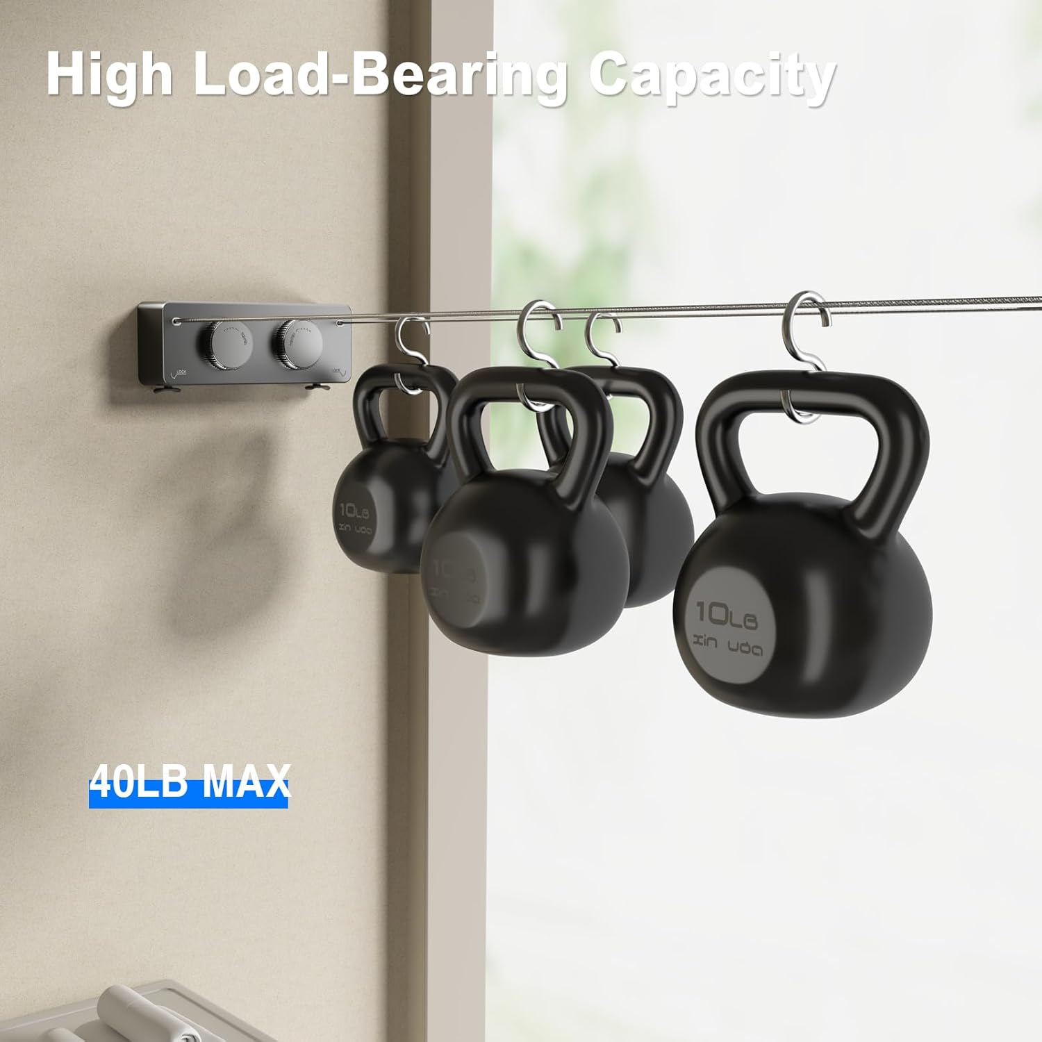 • 【Large Capacity & Heavy Duty】The double line's longest length is 13.8 feet, and there is enough space to hang your clothes, socks, quilts, etc. This Clothesline can also hold a maximum weight of 40 pounds; you don't need to worry about hanging clothes that are too heavy to cause the line to fall.