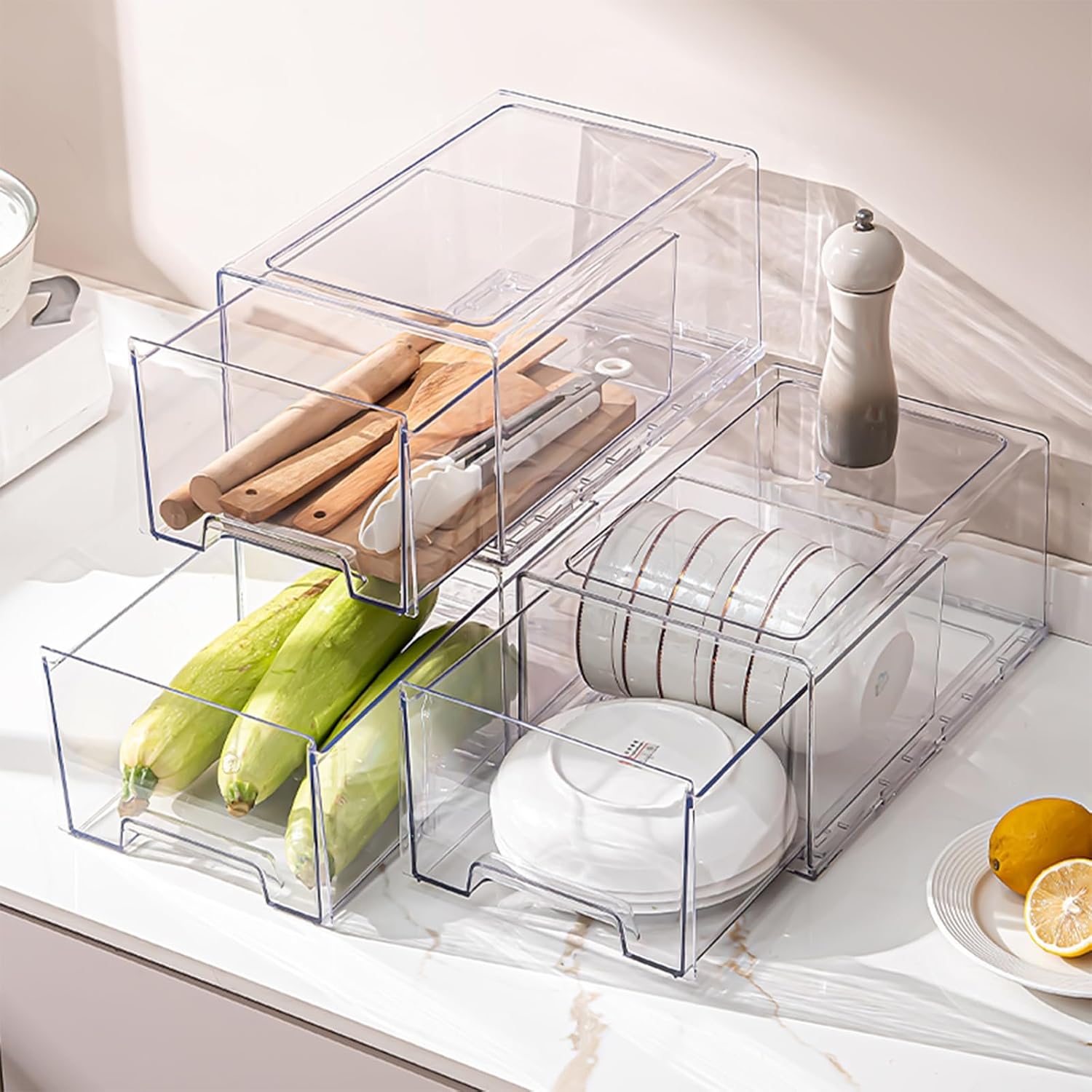PeJeyiee Clear Stackable Refrigerator Organizers and Storage Drawers - Pull-Out Fridge Bins with Anti-Slip Base & Easy Clean, Plastic Organizers for Kitchen Pantry Cabinet Closet  (2XL)