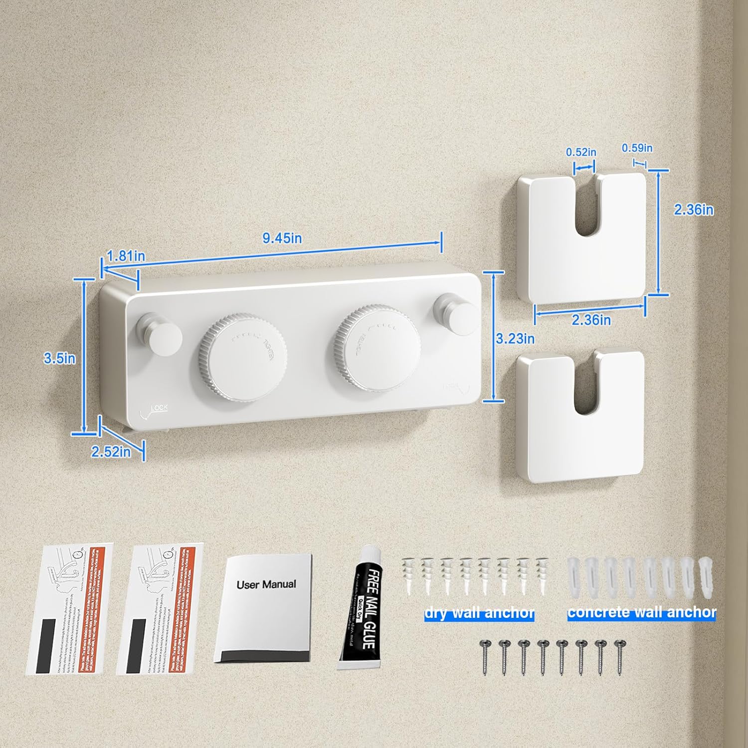 • 【Easy To Install】This Clothesline Retracting offers you two installation options —Glue Mounting and Drill Mounting. If you plan to install it indoors and don't want to damage the wall, we suggest you use Glue Mounting, which won't damage your wall (only for smooth walls like tile, marble, glass, etc.). Drill mounting can be chosen to install anywhere you want.