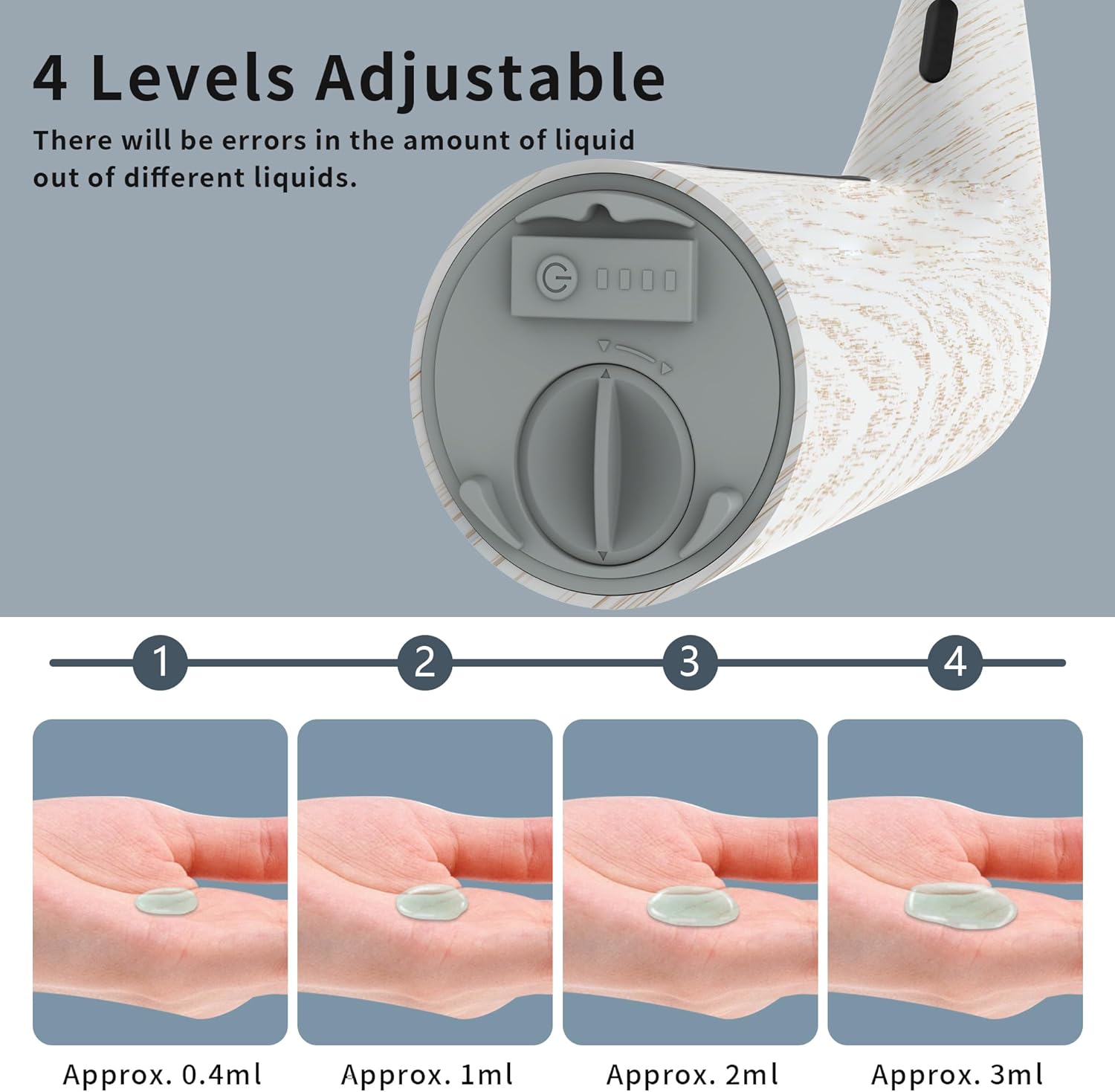 • 【Smart 4-Level Dispensing】This countertop soap dispenser offers 4 precision settings (0.4ml-3ml) - ideal for thick dish soap or light hand sanitizer. The kitchen dish soap dispenser helps reduce liquid waste while providing appropriate portions every time.