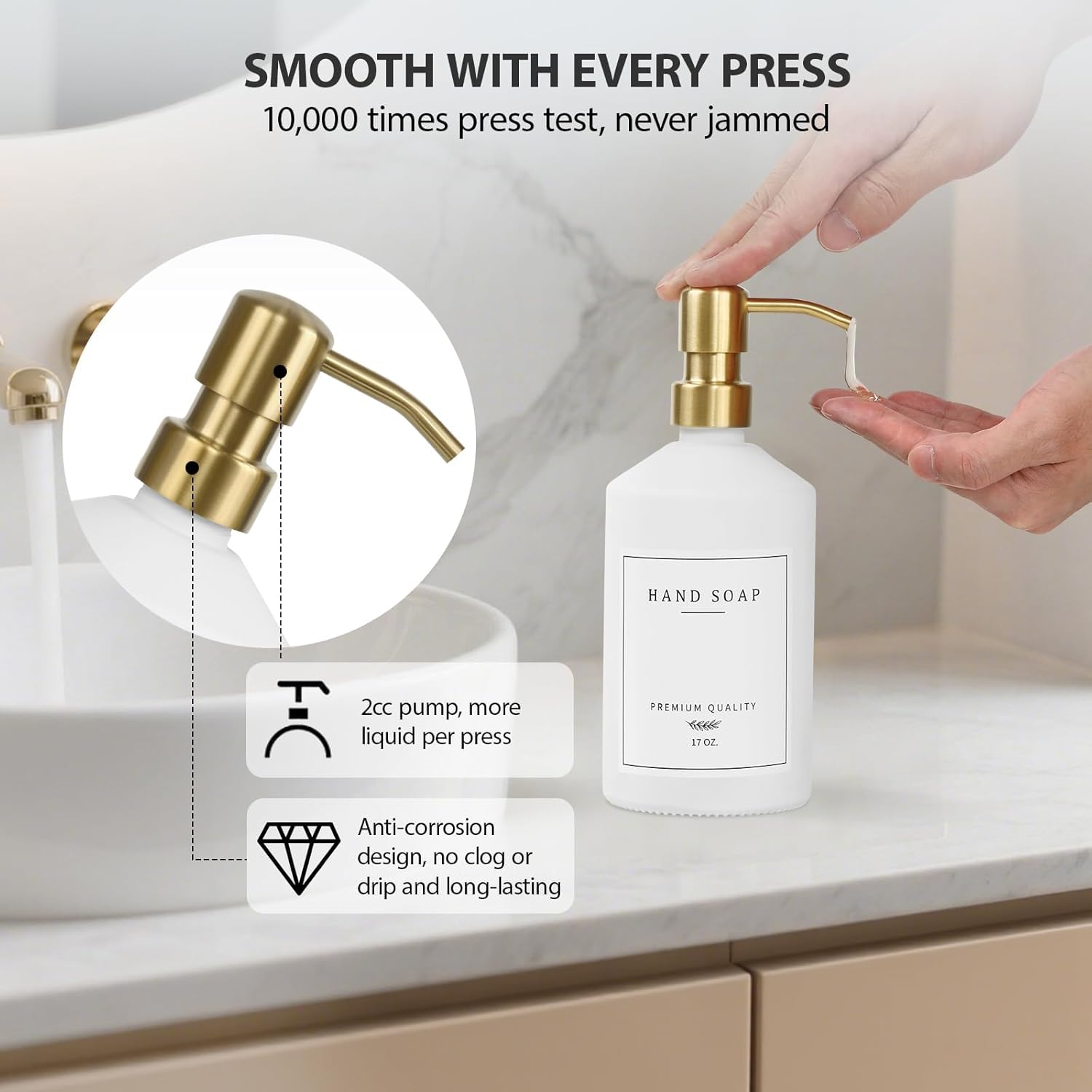 • 【High-Quality & Long-Lasting】Skip flimsy, yellowing plastic! Our bottles are crafted with thickened lead-free glass (safer than plastic). The generous 17oz capacity minimizes refills, and the upgraded rust-proof pump has passed 10,000 press tests for smooth, leak-proof operation. The collapsible silicone funnel ensures mess-free refilling and keeps your countertops spotless