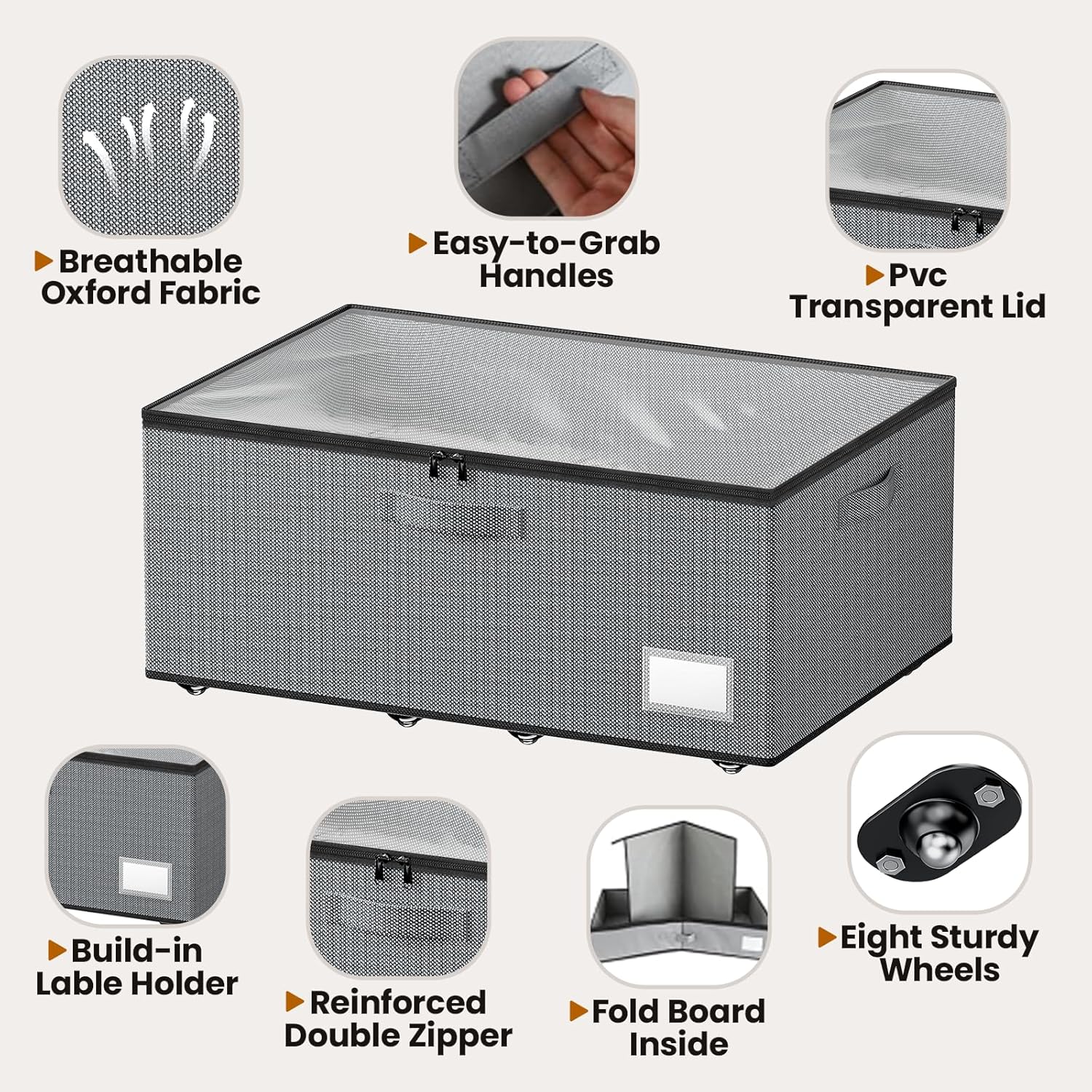 • 【TRANSPARENT LID DESIGN】: The under bed storage with clear lids, this storage solution allows easy identification of contents without opening, reducing clutter and misplaced items, The design keep out moisture, dust, and dirt, maintaining a clean and organized space