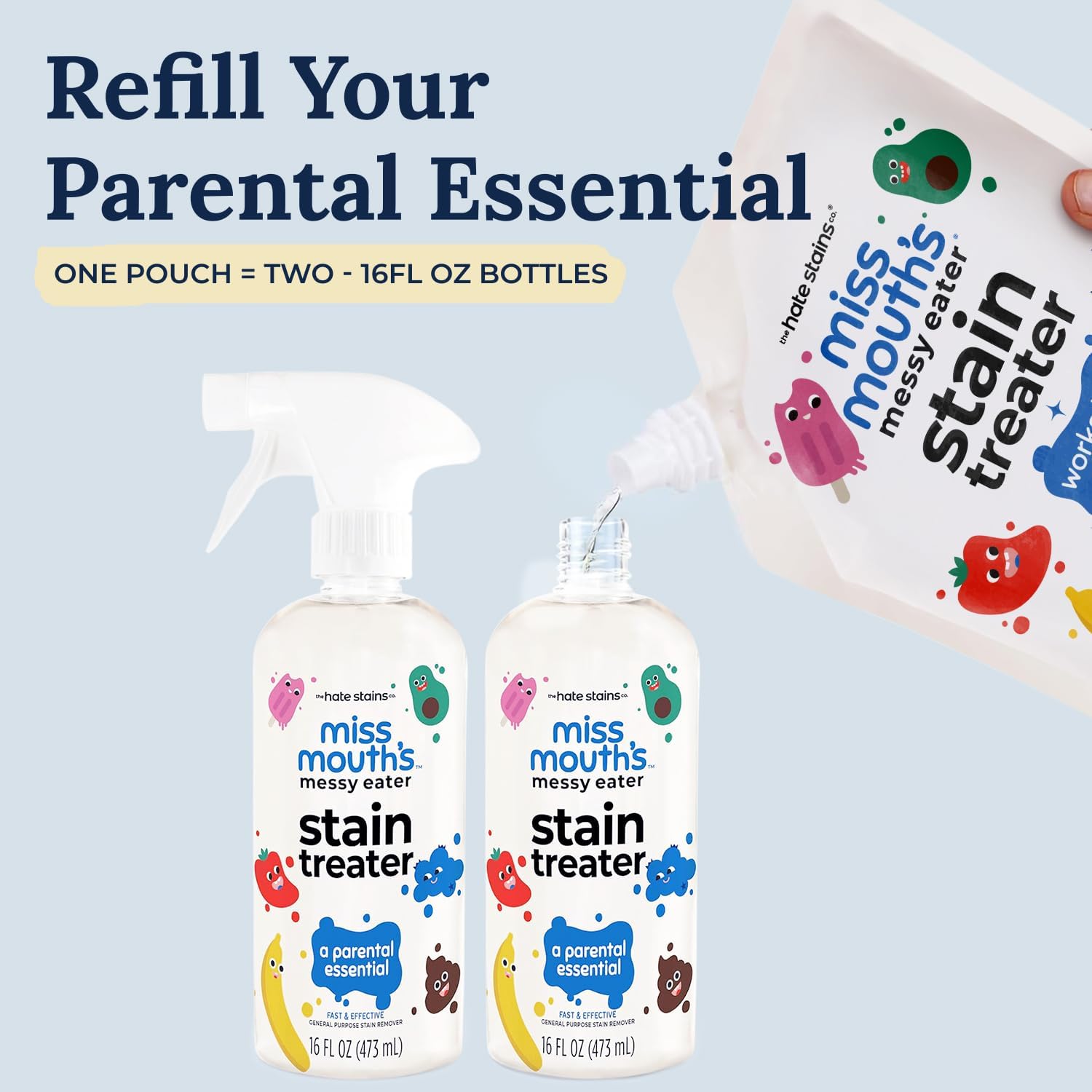 Miss Mouth's Messy Eater Stain Treater - 32oz Refill - Newborn & Baby Essentials - No Dry Cleaning Food, Grease, Coffee Off Laundry, Underwear, Fabric