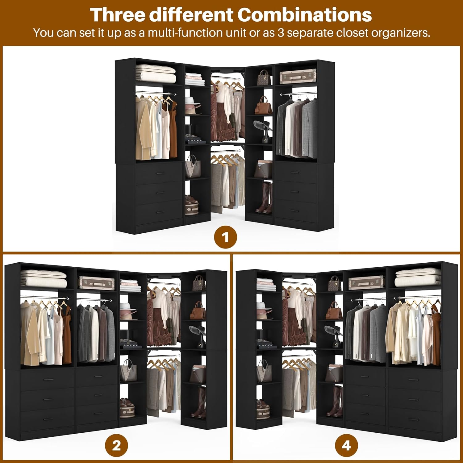 • DIY Customize Your Dream Walk-in Closet: Our closet systems put the design in your hands, allowing you to DIY to your liking. You have the flexibility to mix and match different modules based on room size, personal style and storage requirements to create an dreamful L- or U-shaped walk-in closet.