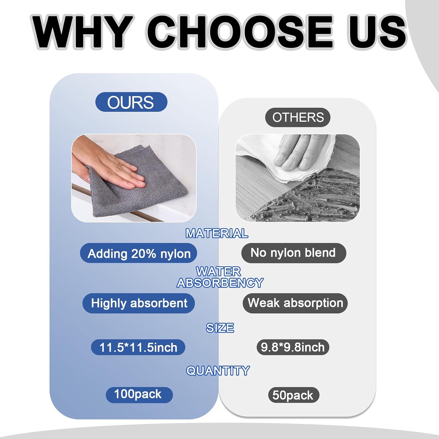 • Upgraded Material Formula Outperforms Competitors: Unlike standard 100% polyester cloths, our 80/20 polyester-nylon blend significantly enhances durability, absorbency, and lint resistance. It efficiently traps dirt and dries quickly, reducing waste and boosting cleaning efficiency.