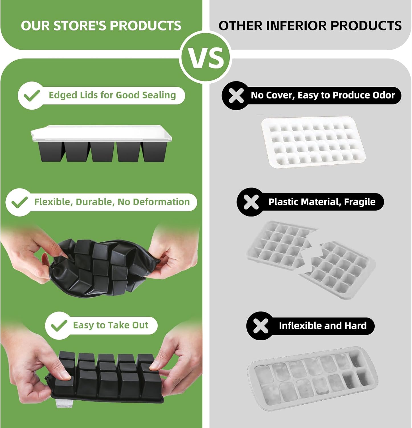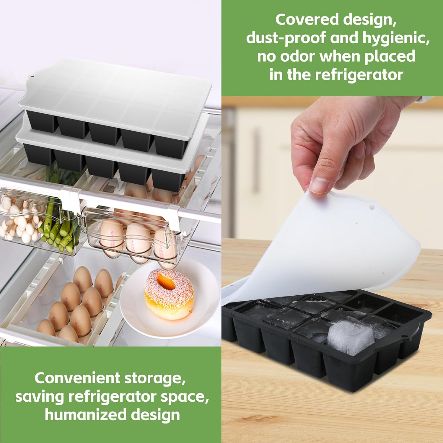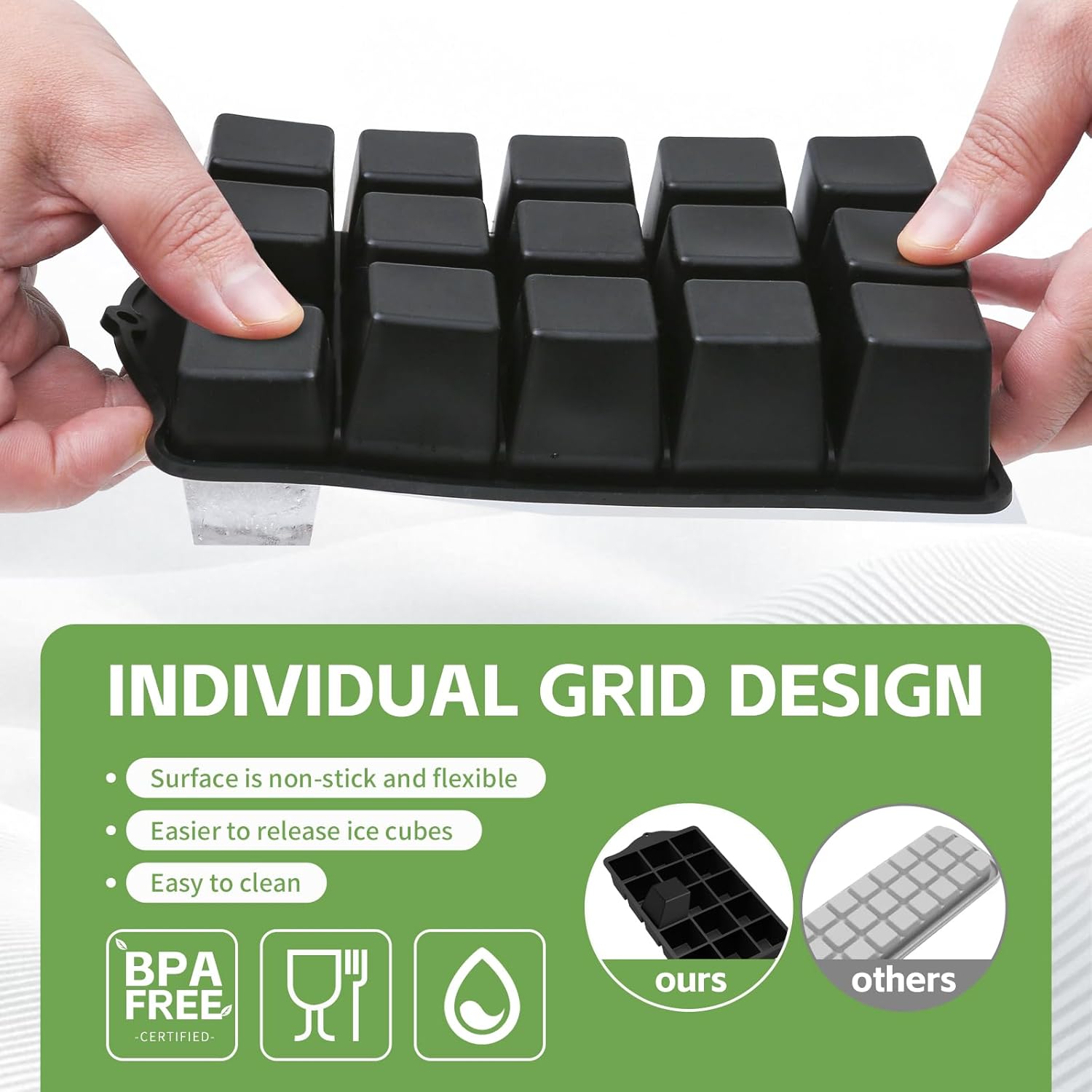 • 【Flexible & Easy-Release Ice Trays 】Our upgraded ice tray with lid features a sleek, non-stick surface for easy release. Just squeeze or push, and ice cubes pop out smoothly.Ice cube trays for freezer with lid are ideal for cocktails, smoothies, or everyday drinks, making your ice-making quick and frustration-free.