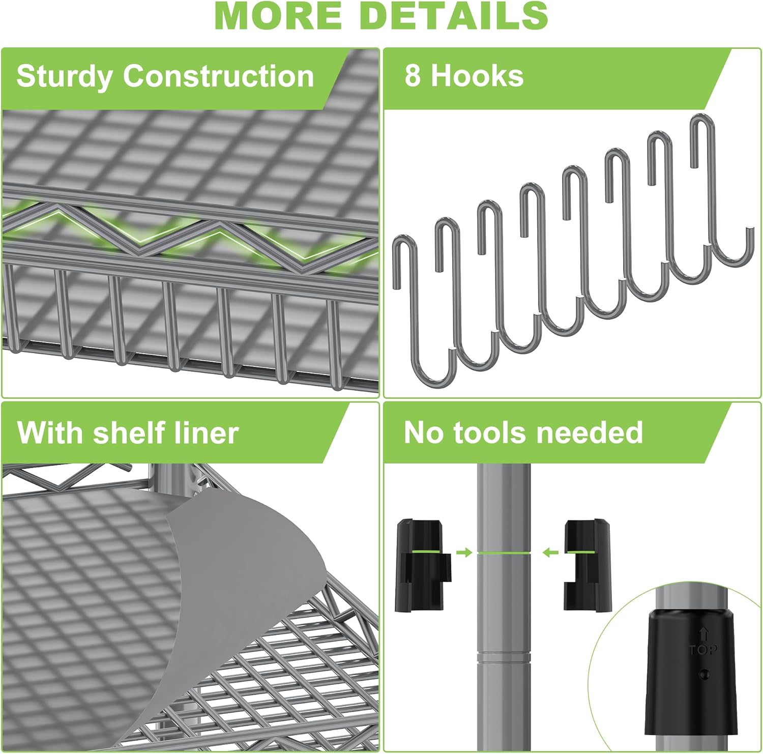 • 【Rust-Proof & Scratch-Resistant】Kitchen Carts on Wheels surface adopts high-quality electroplating coating process, the surface is glossy and bright, scratch-resistant and wear-resistant, which can prevent rust, corrosion or water penetration, and is very suitable for use in kitchens, warehouses, garages, gardens, and offices